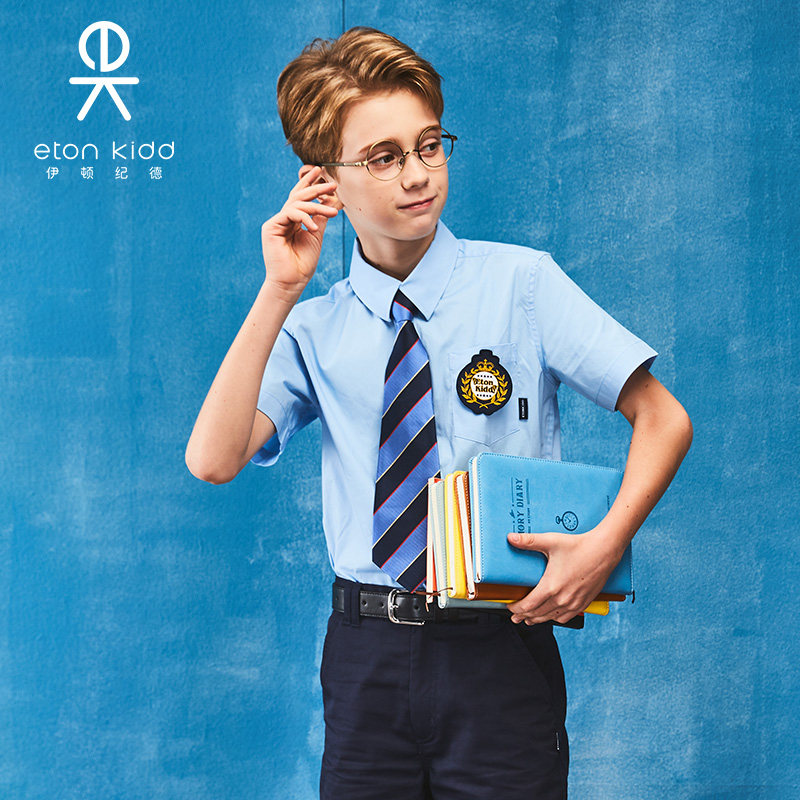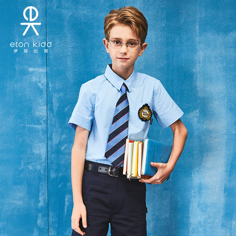 伊顿纪德校服中小学生学院男童夏季浅蓝色短袖衬衫儿童衬衣10C107