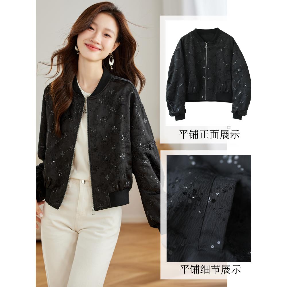 2025秋装新款高级感亮片黑色棒球服夹克上衣休闲时髦长袖短外套女