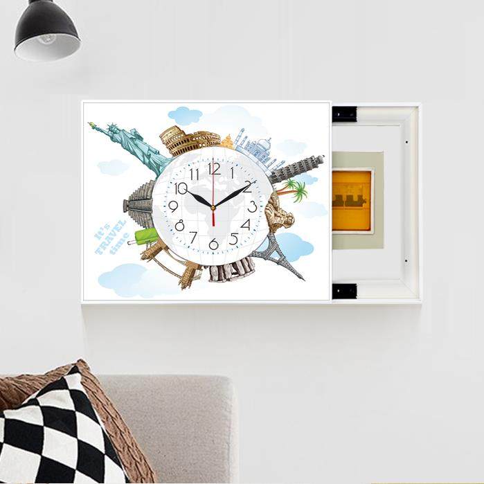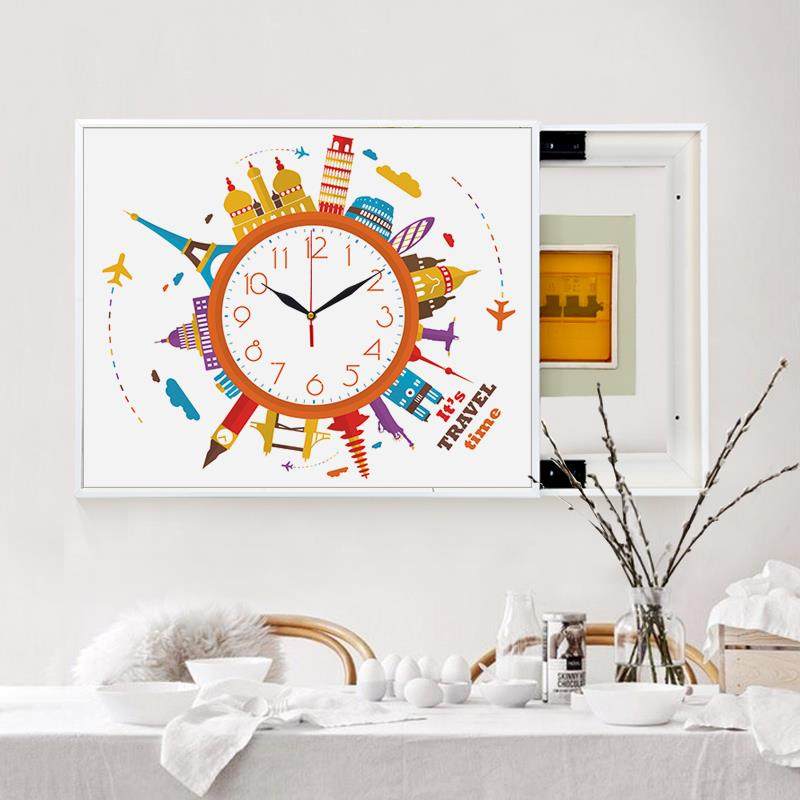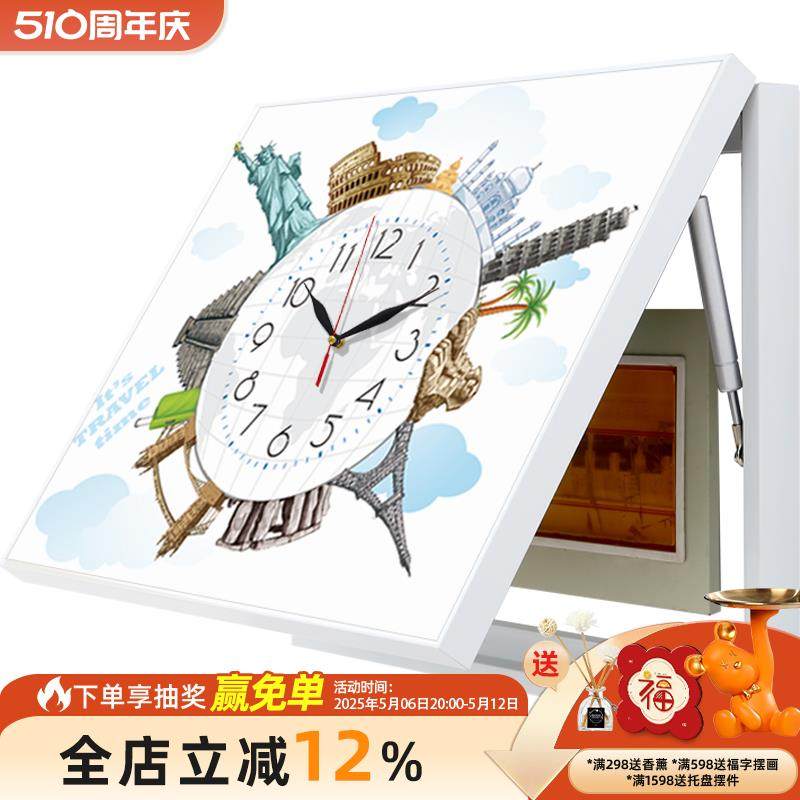电表箱装饰画可推拉遮挡配电箱挂画现代简约客厅电盒子钟表简欧