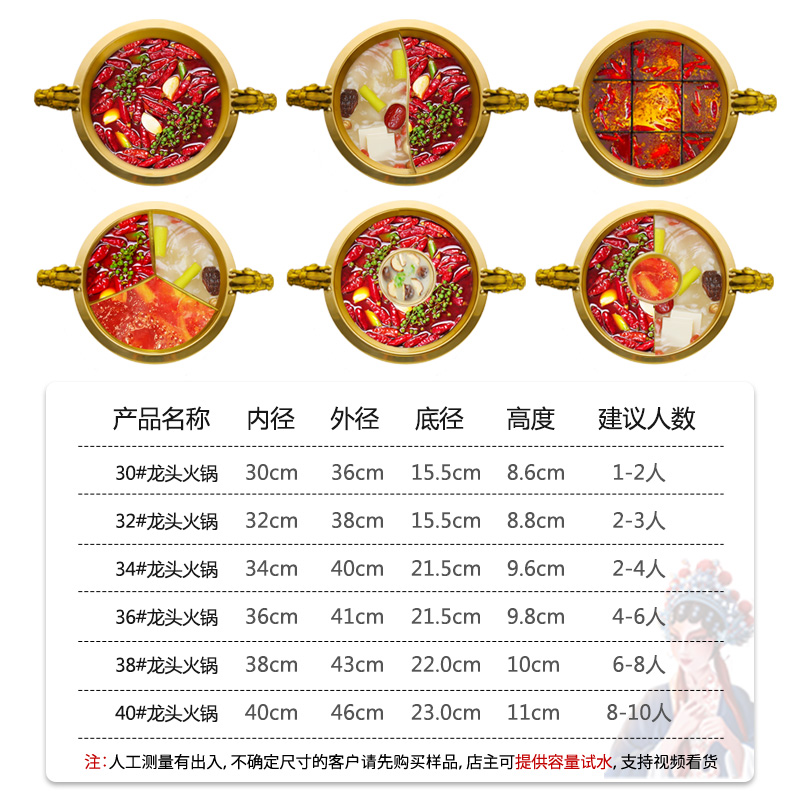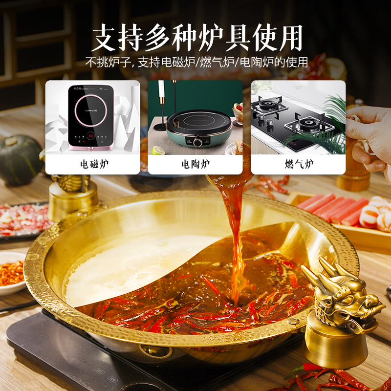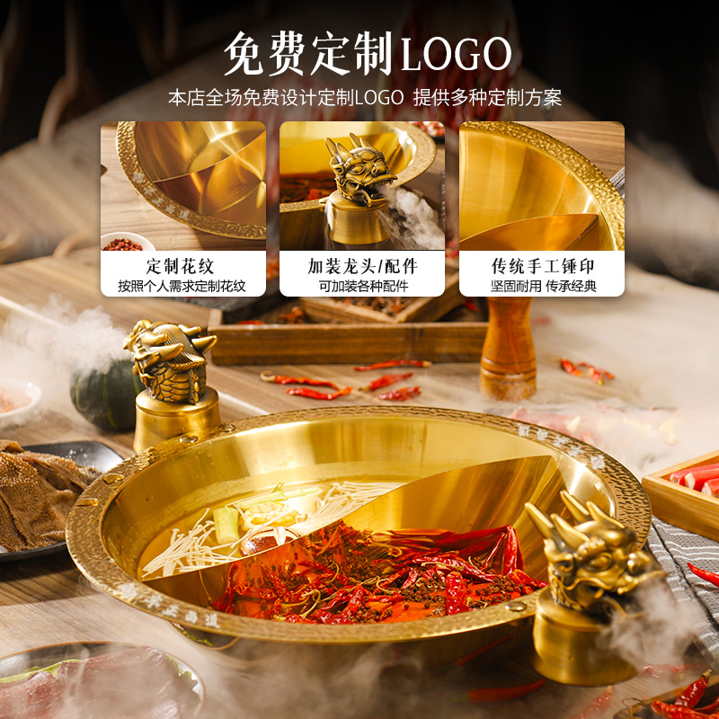 304特厚不锈钢火锅盆龙头干冰鸳鸯锅电磁炉燃气专用商用大容量锅