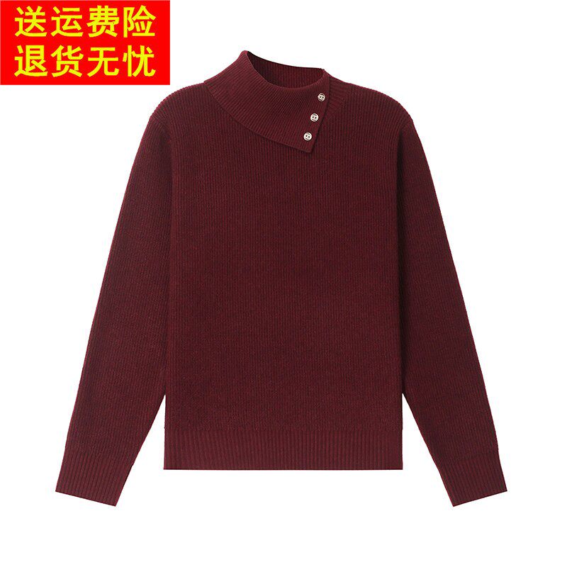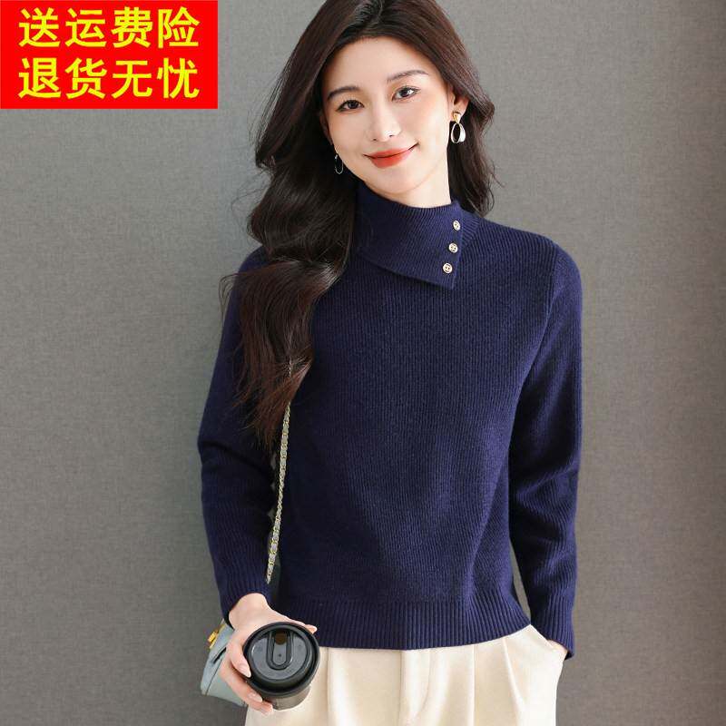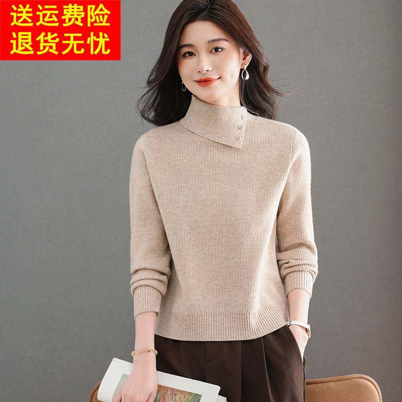 鄂尔多斯市高级感高翻领毛衣秋冬女短款时尚内搭纯羊毛针织打底衫