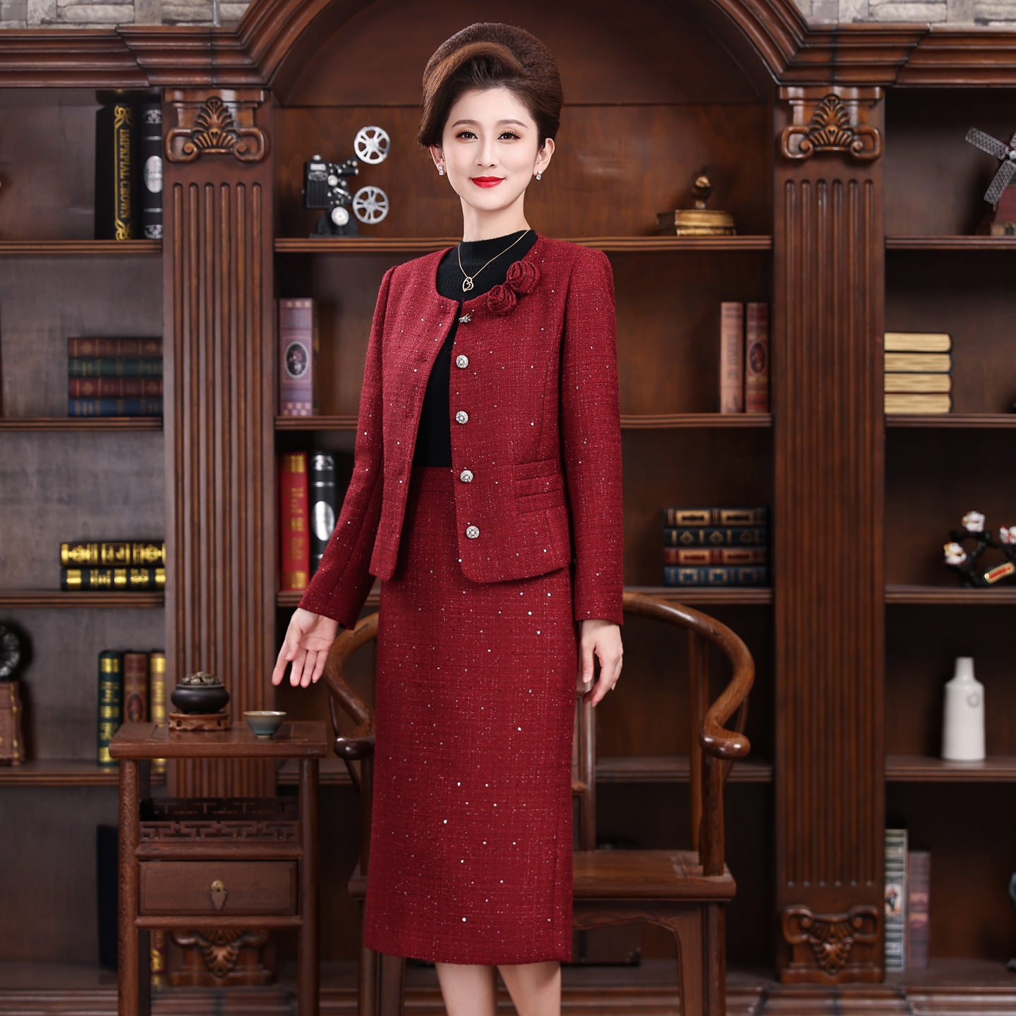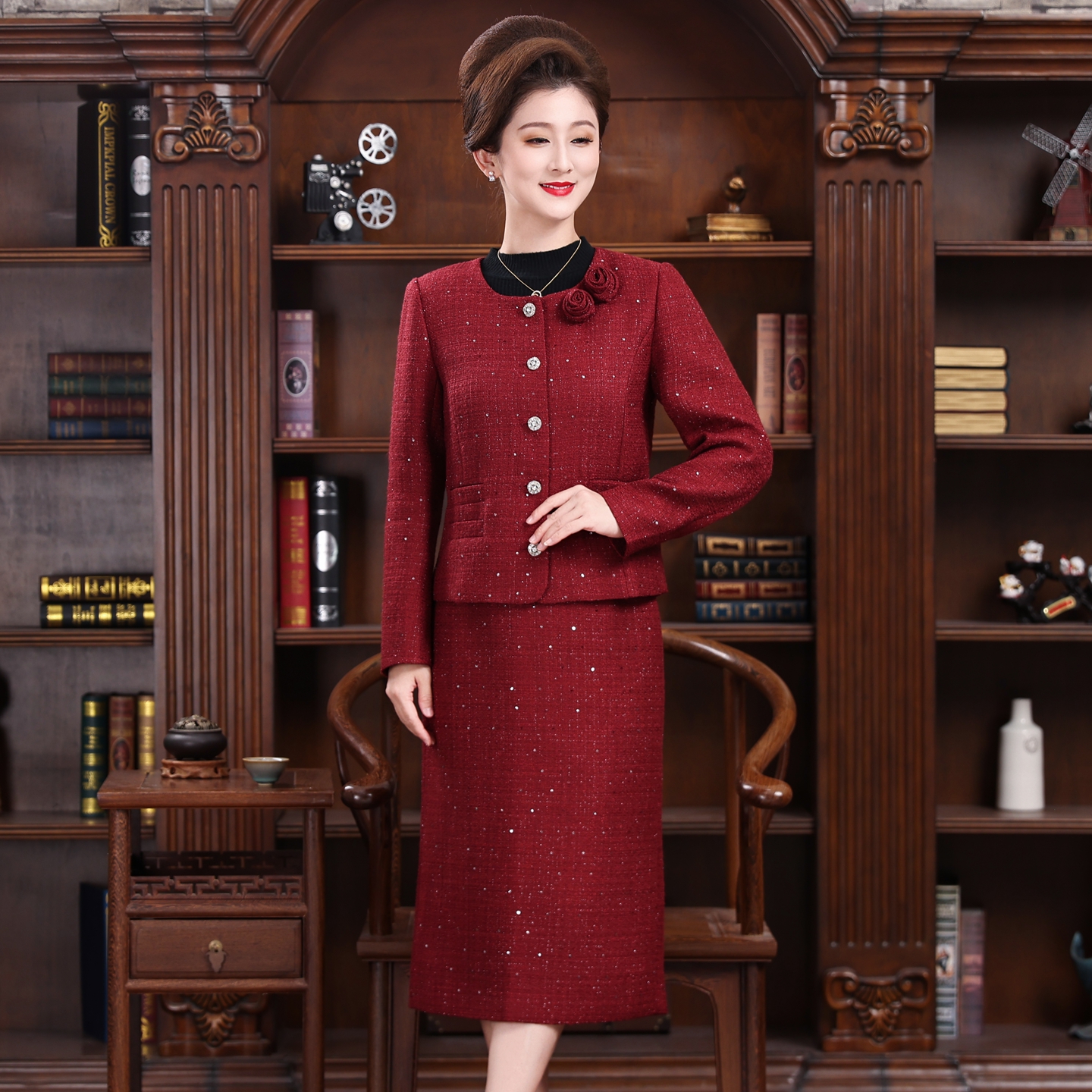 喜婆婆婚宴套装礼服妈妈高贵红色敬酒服高级感小香风两件套装裙子