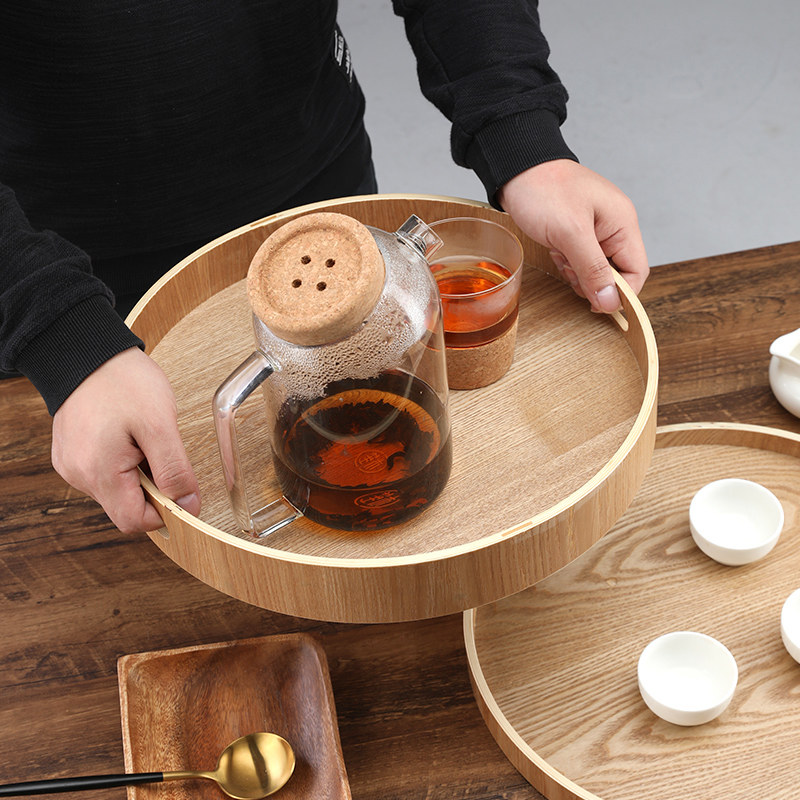 日式木质茶盘家用圆形面包盘