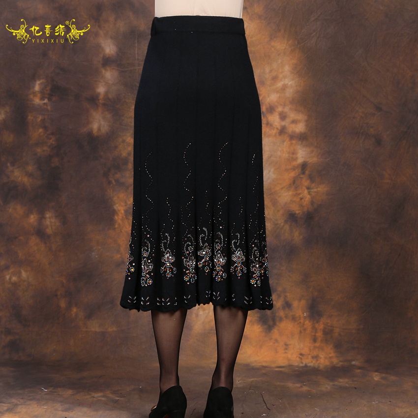 亿喜绣秋冬新款高端女装羊绒半身裙妈妈毛衣裙中年大码羊毛百褶裙