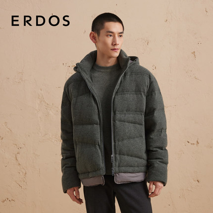 ERDOS 绒毛混纺羽绒服冬90白鹅绒填充可拆卸夹克拼接男外套