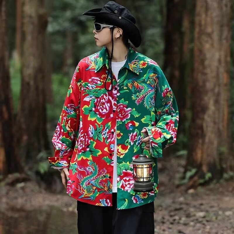 东北大花布衣服中国风衬衫男女国潮休闲团队二人转演出服装外套春