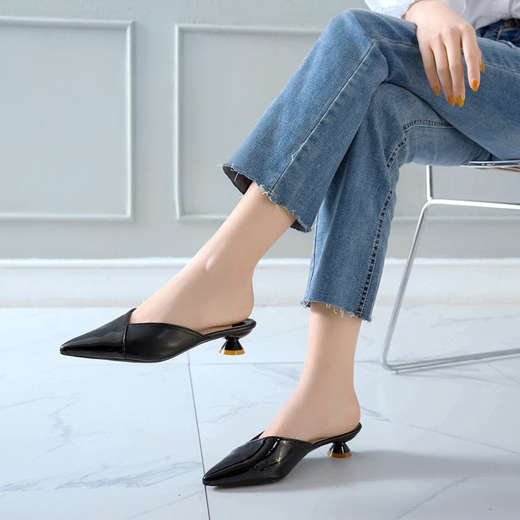包头外穿拖鞋女2025夏季新款尖头韩版时尚百搭粗跟懒人半拖凉鞋潮