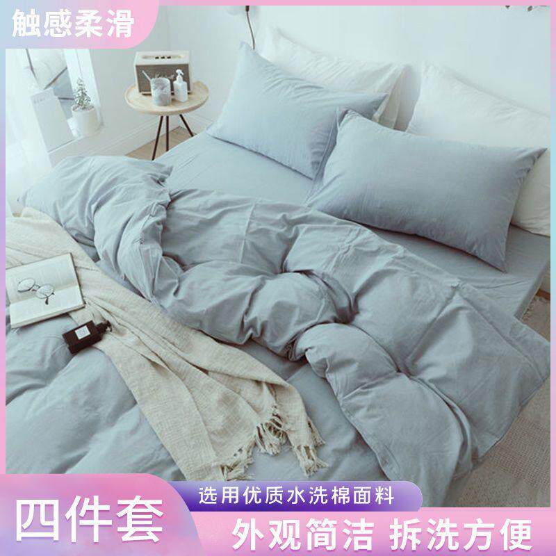 日式纯棉针织4套全棉床单套宿舍床笠式三被套床上用品9yekyqoZ件