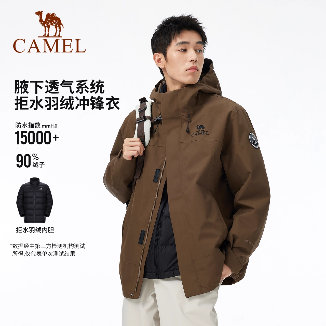 骆驼户外羽绒冲锋衣女三合一2025新款拒水羽绒服内胆防风防水外套