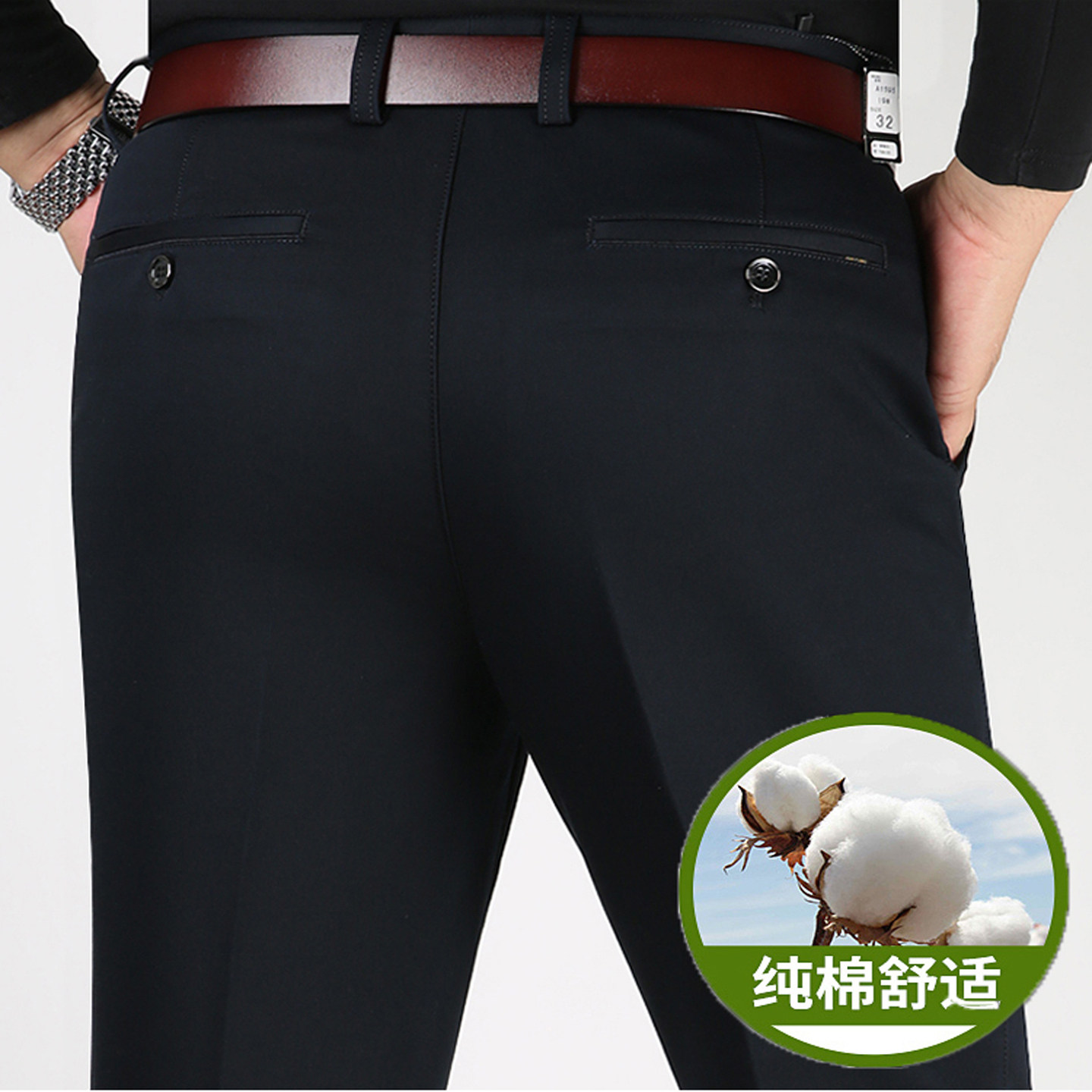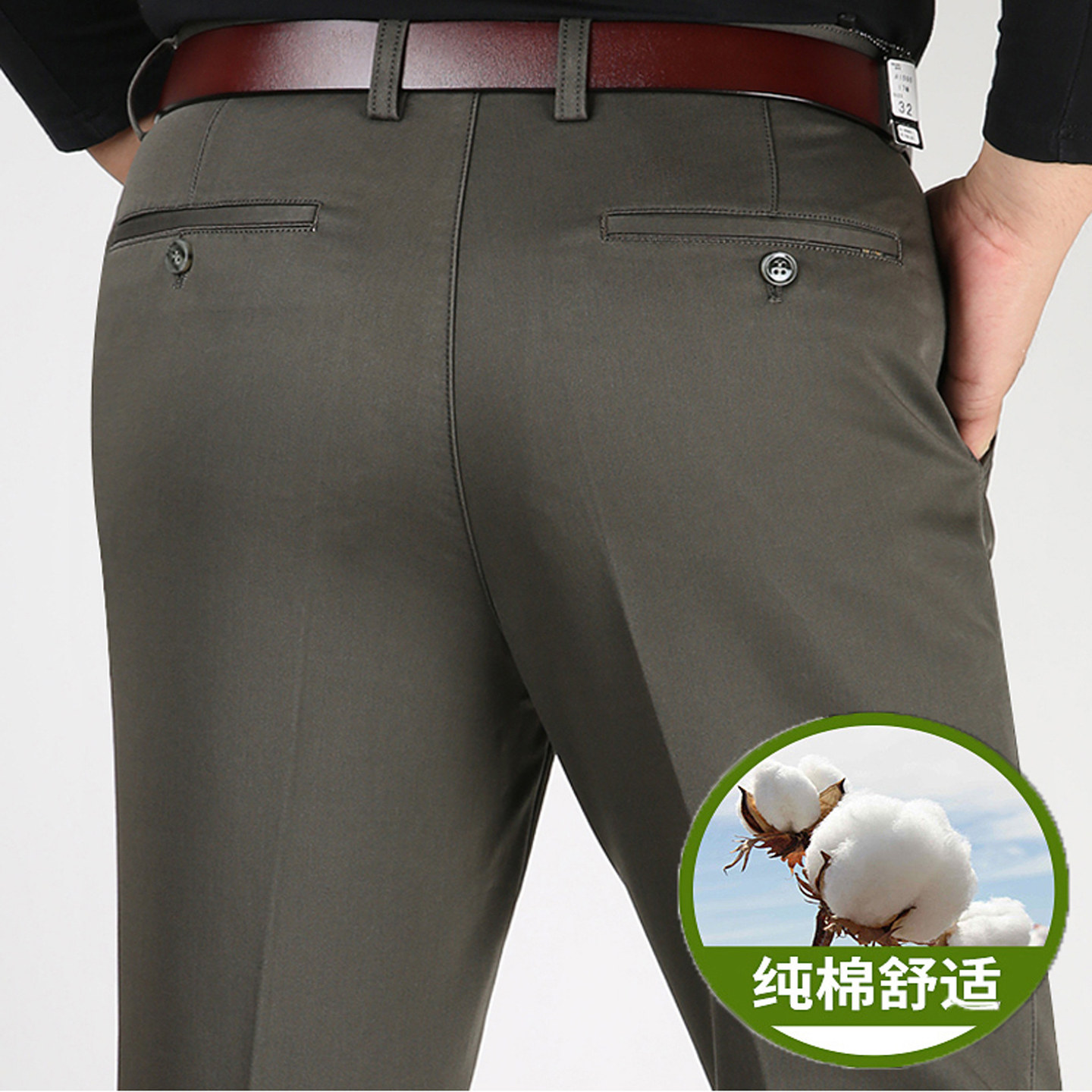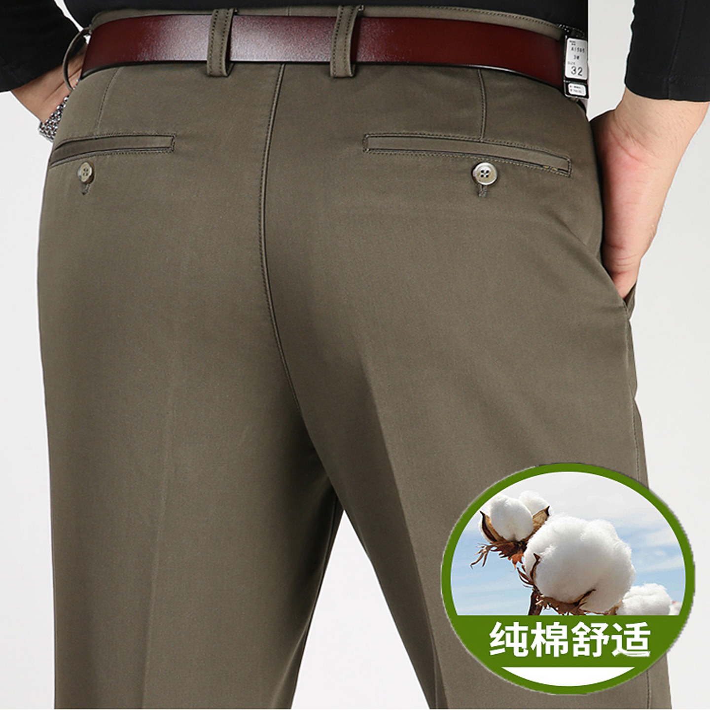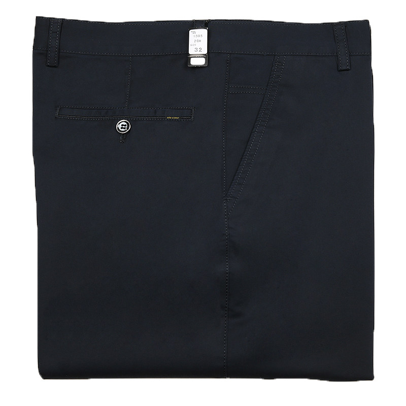 虎都纯棉男士休闲裤宽松直筒爸爸装裤子秋冬厚款高腰免烫中年男裤