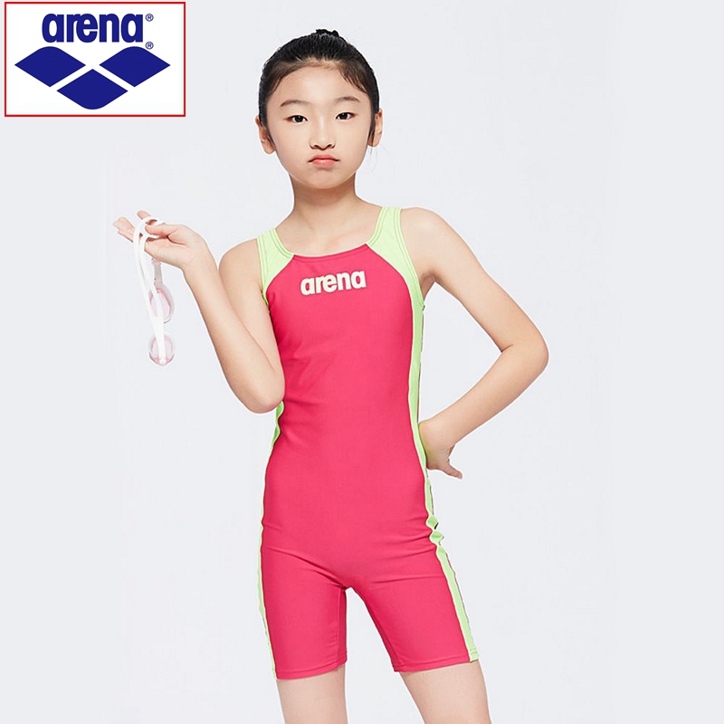 arena阿瑞娜儿童泳衣女连体平角女童专业保守及膝中大童游泳衣