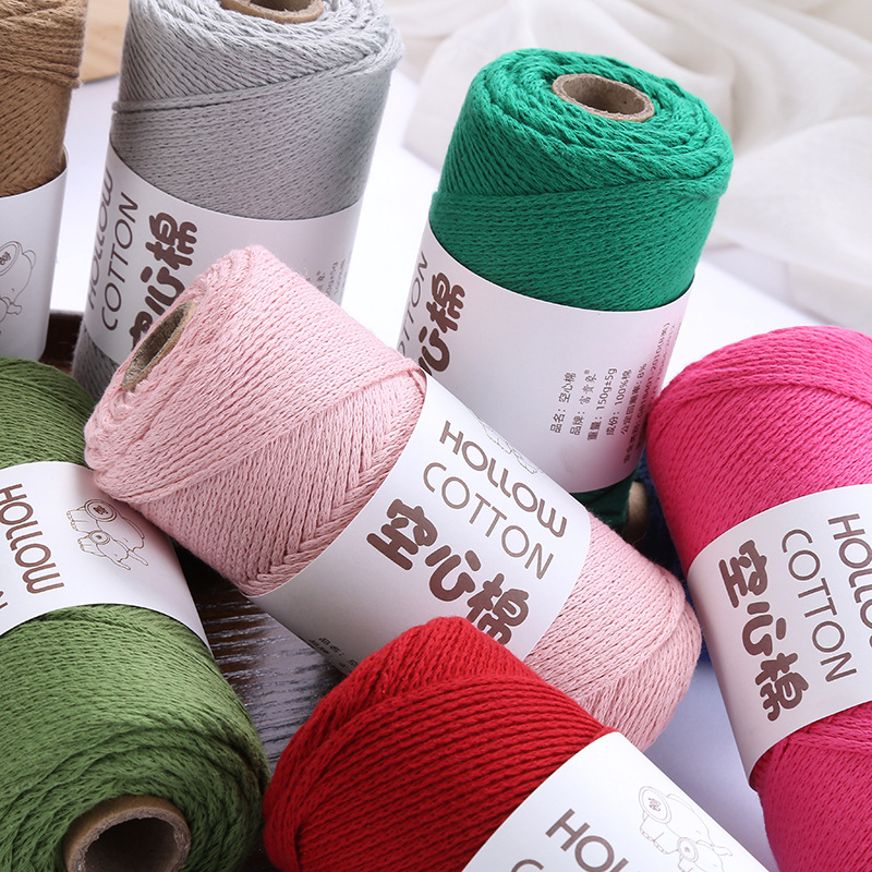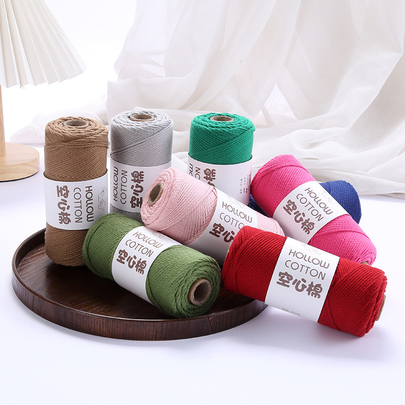 精梳空心棉线2mm硬挺圆股纱线中粗棉麻毛线DIY手工钩针编织包包线