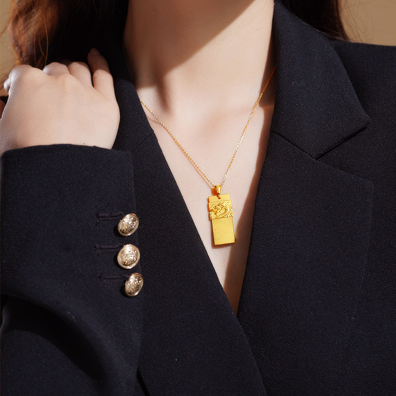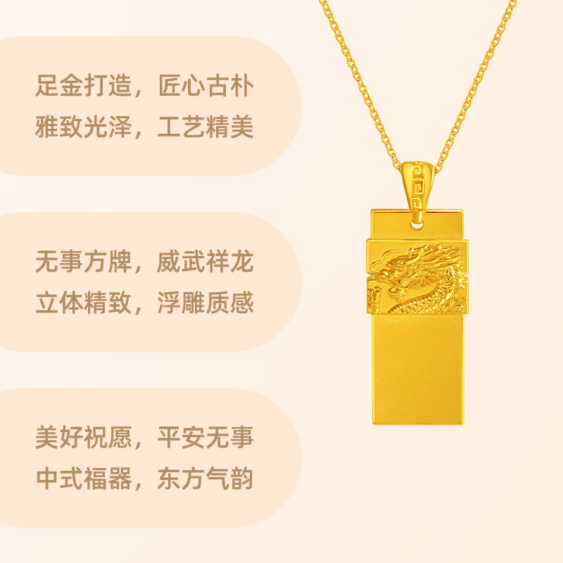 老庙黄金足金999祥龙无事牌吊坠挂坠瑞兽生肖龙守护大气金贵中性
