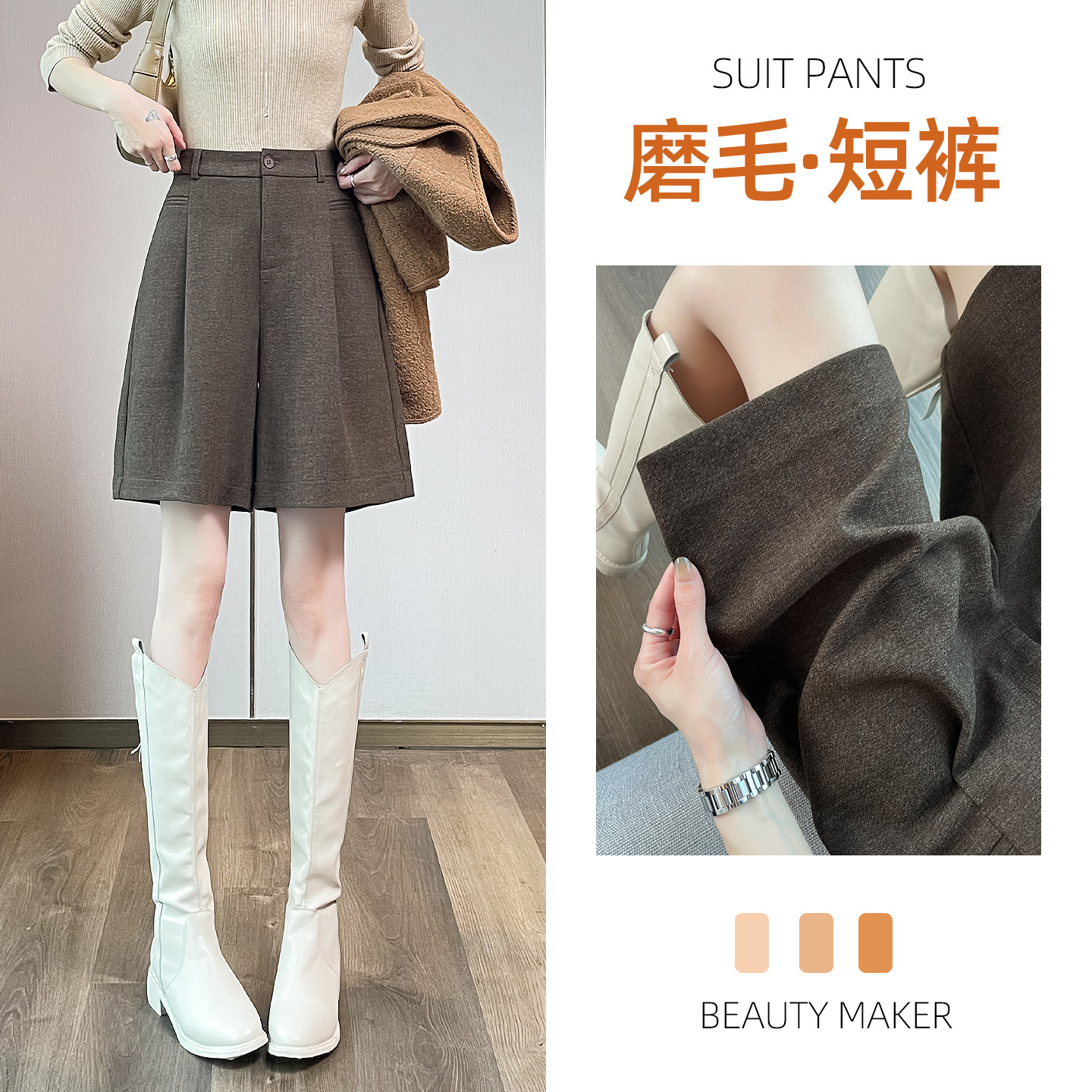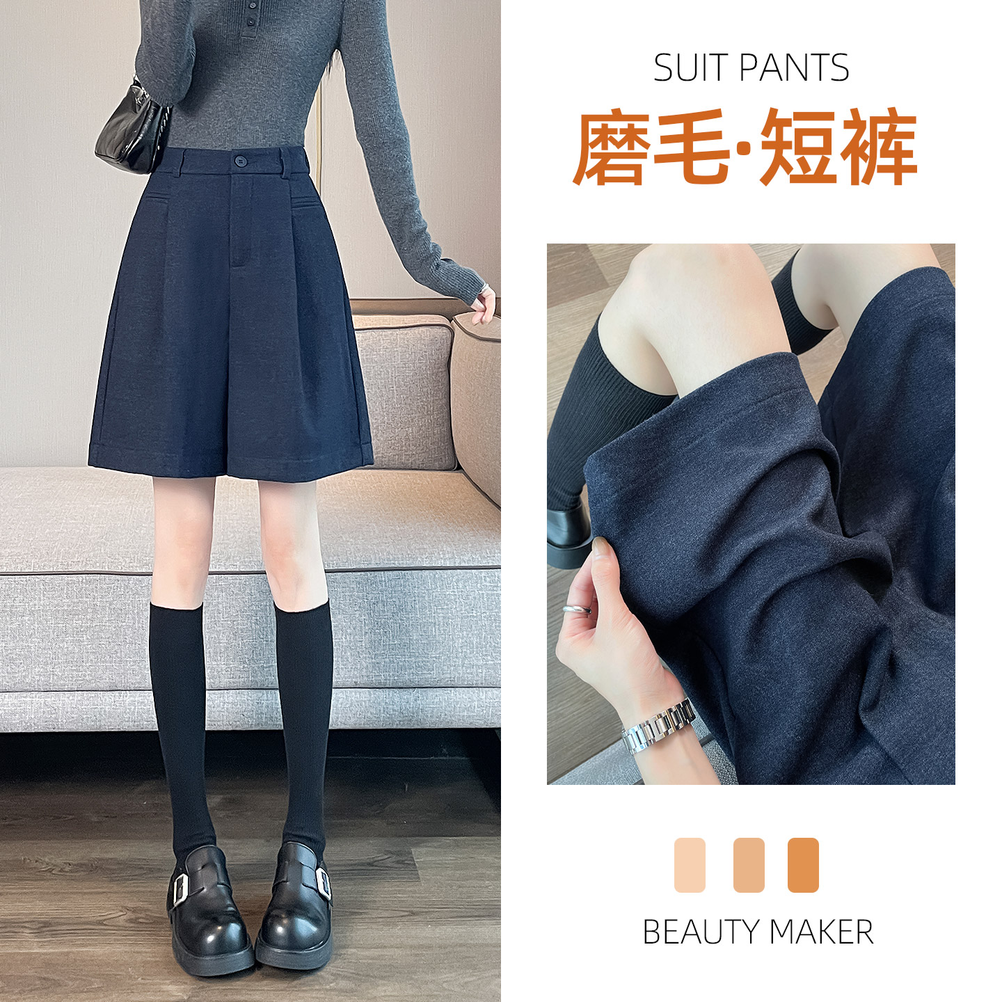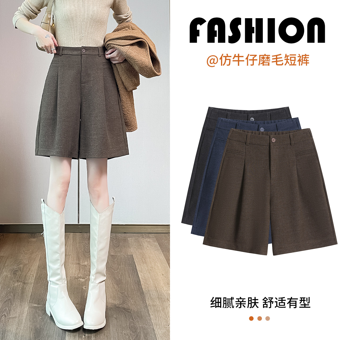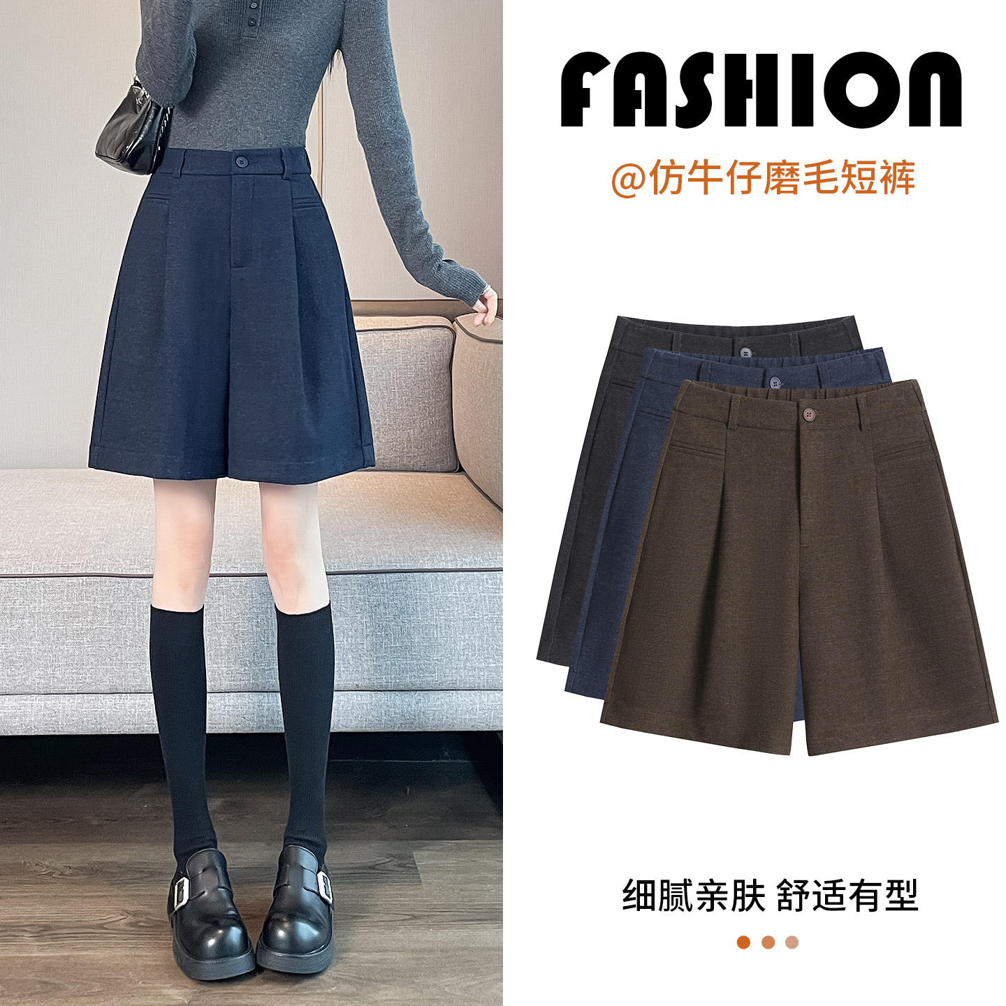 仿牛仔磨毛短裤女2025秋冬季新款外穿高腰宽松显瘦a字阔腿西装裤