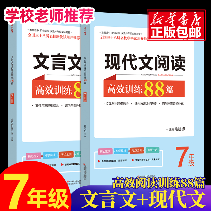 初中七八九年级文言文+现代文高效训练88篇全国通用初一789年级上下册通用初中学生课外阅读理解古代诗词现代阶梯阅读训练中学教辅