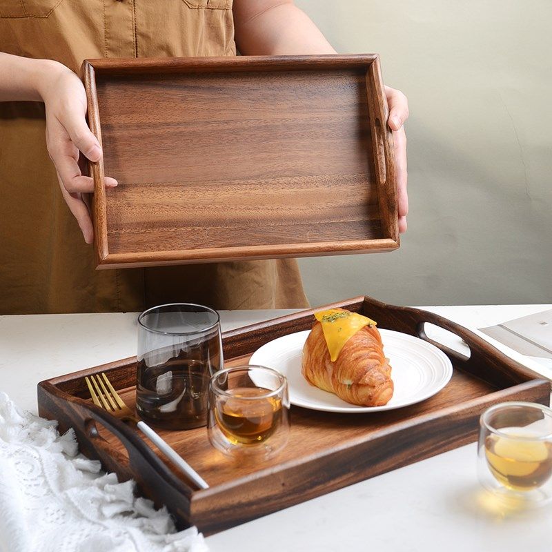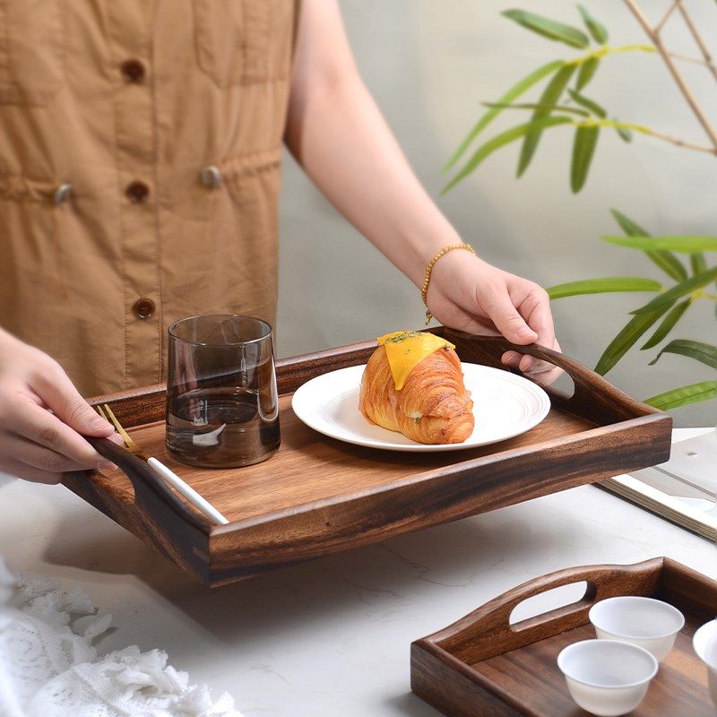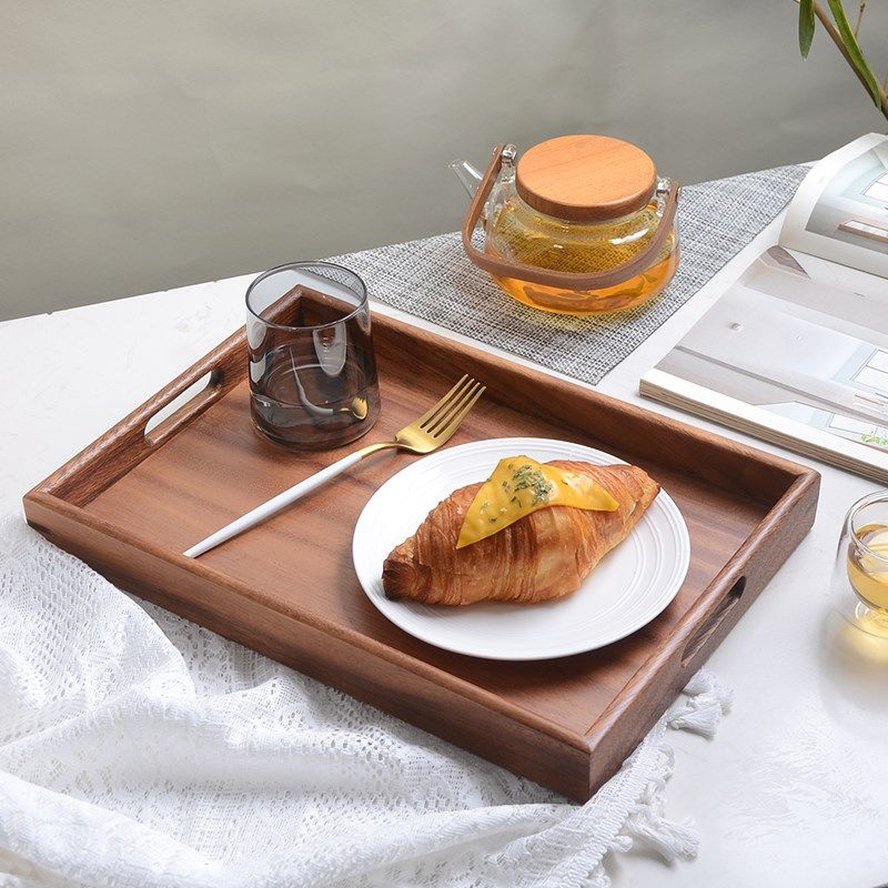 日式托盘长方形点心盘茶盘收纳家用放茶水杯盘敬茶果盘木质托盘