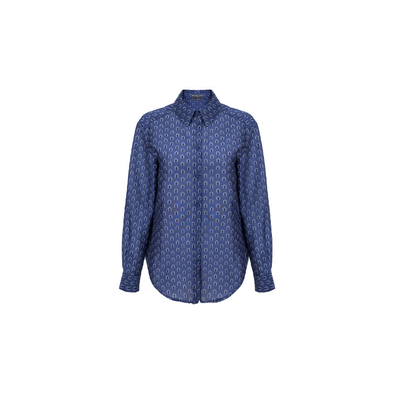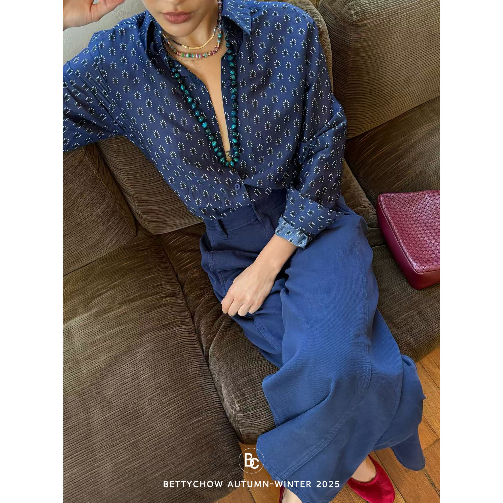 Bettychow 梅丁同款!真丝棉混纺蓝色复古宽松百搭cleanfit衬衫