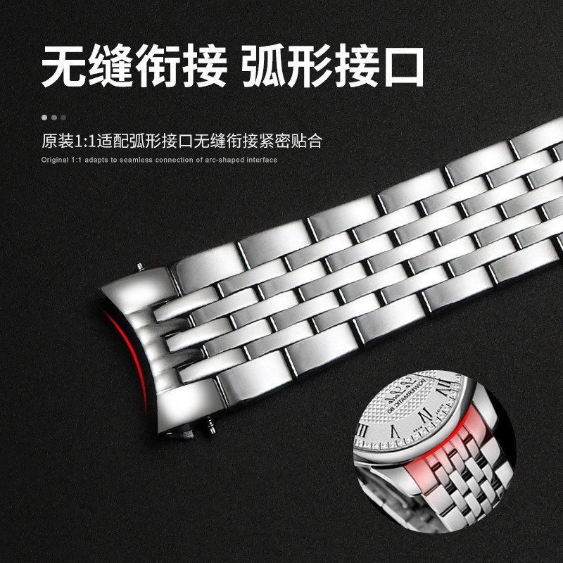 适用于天梭力洛克1853系列手表带金属实心钢带不锈钢弧扣表带现货