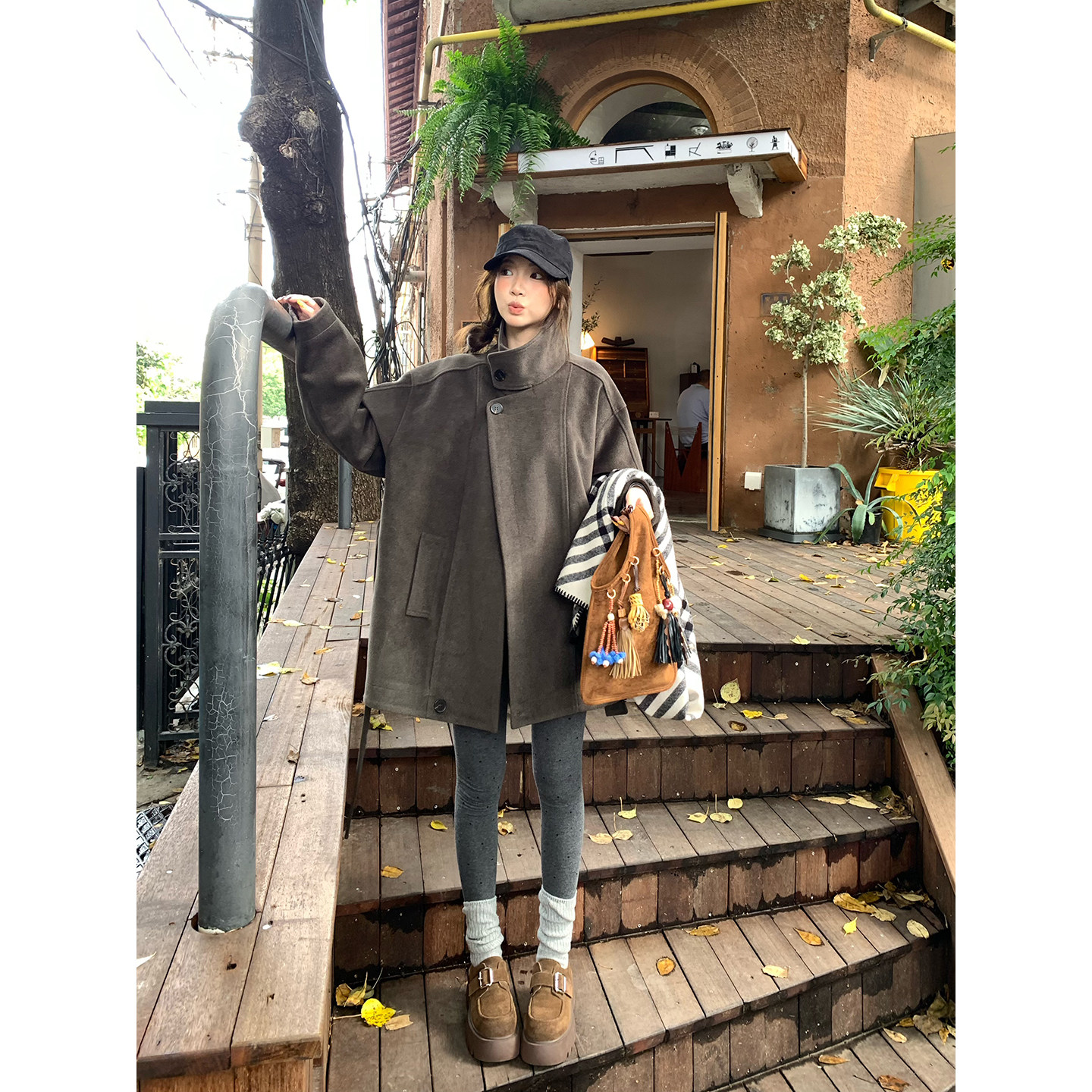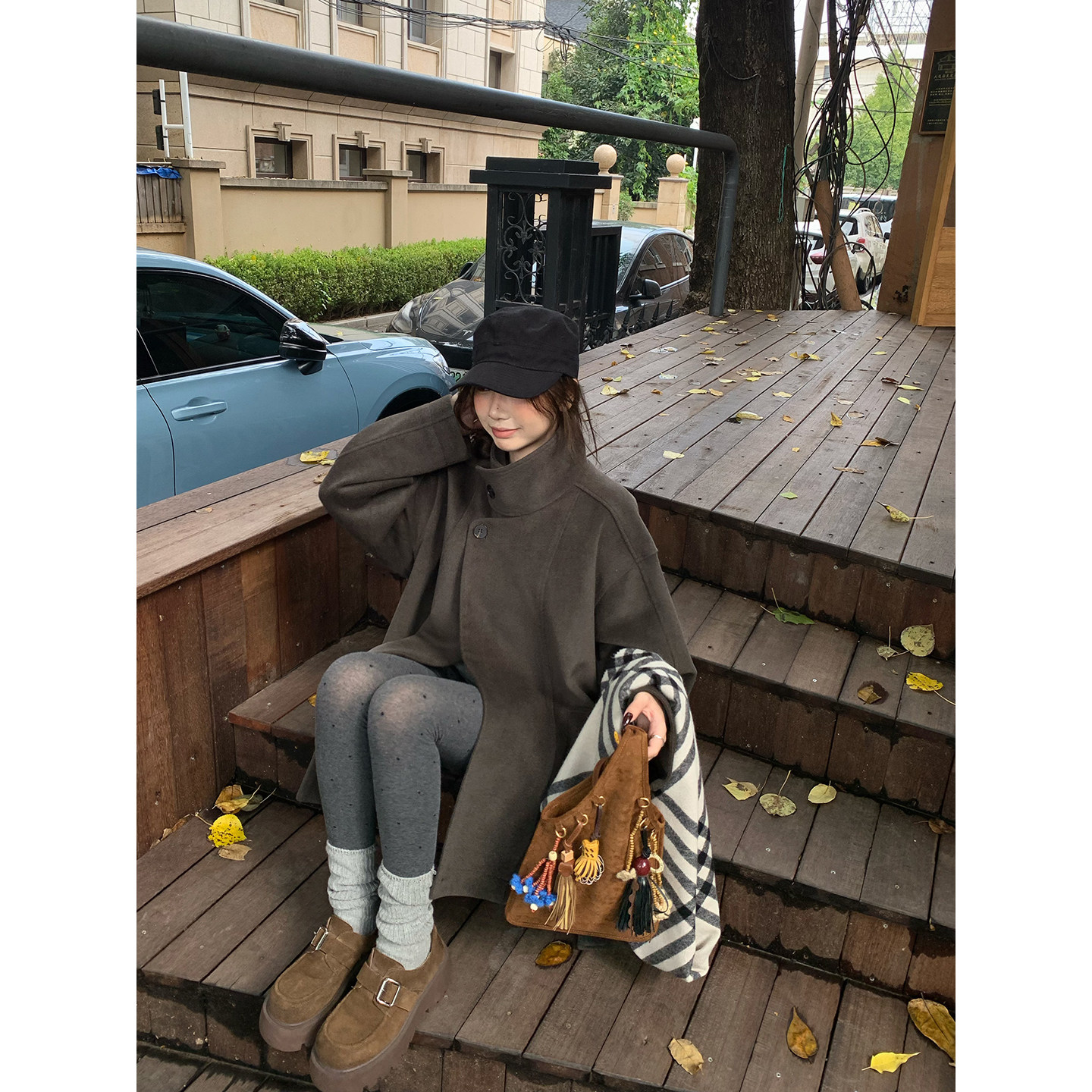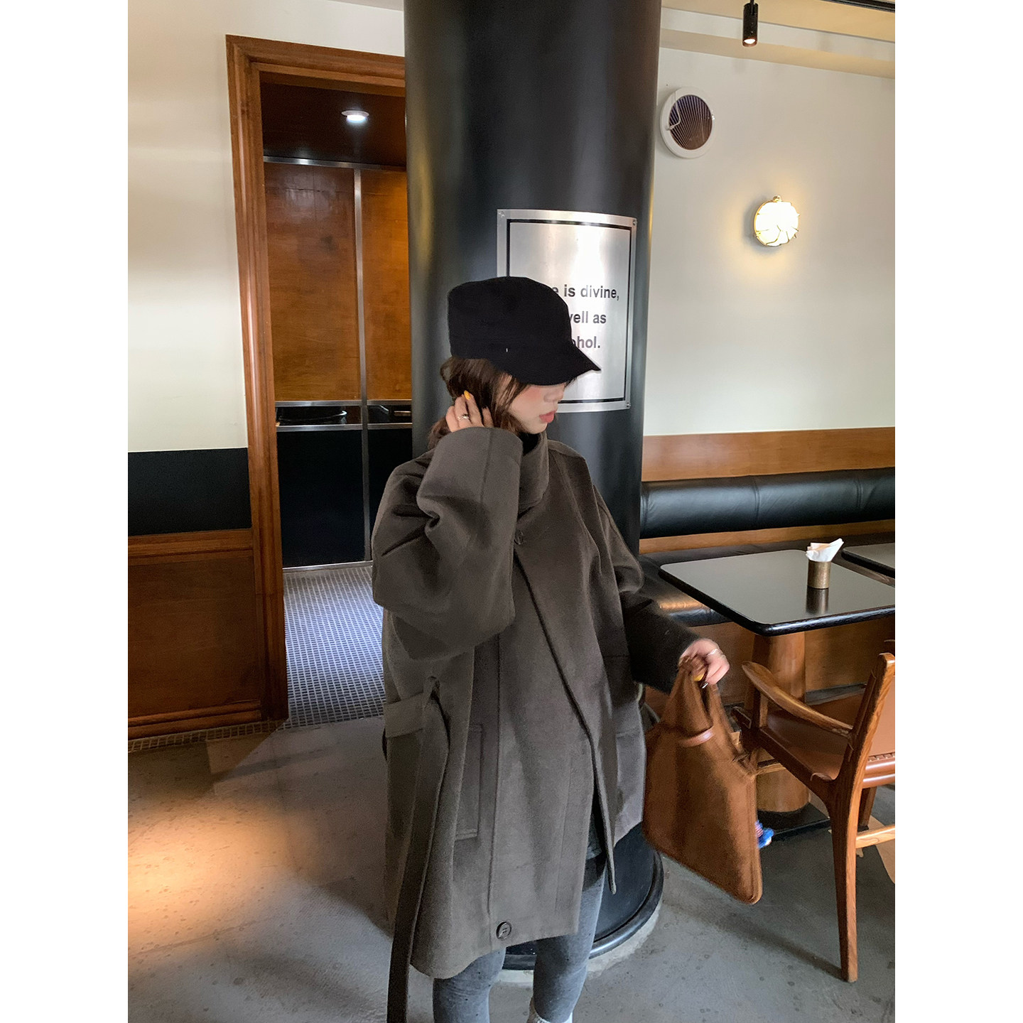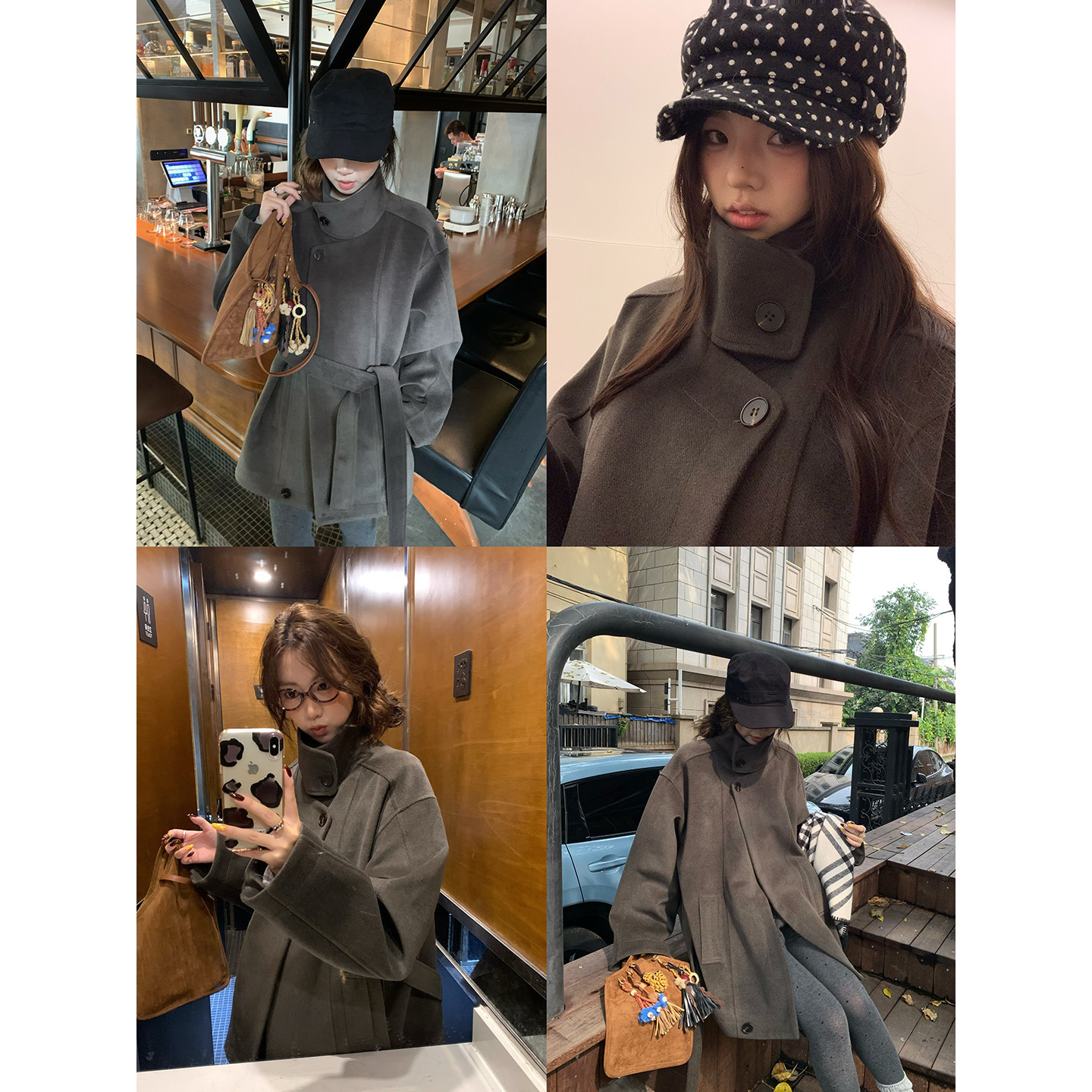 荒荒家腰带呢子外套2025秋季新款甜酷立领小众设计毛呢风衣大衣女