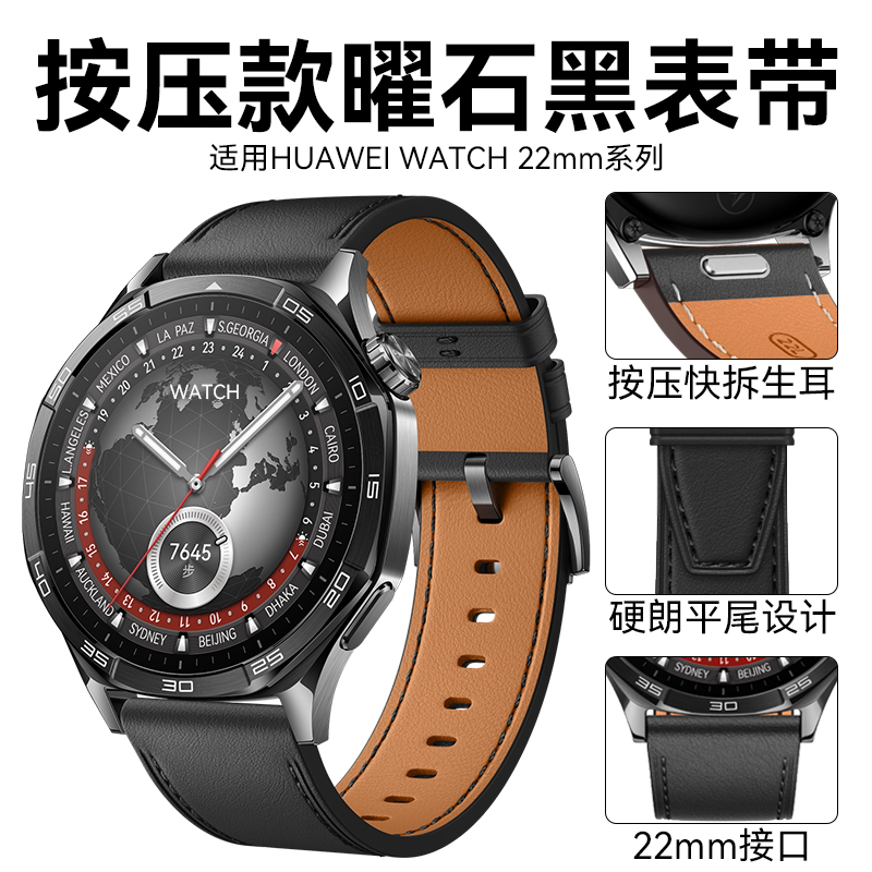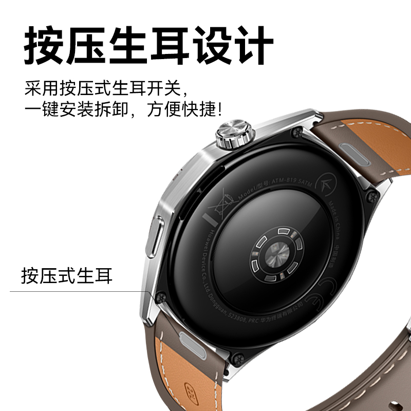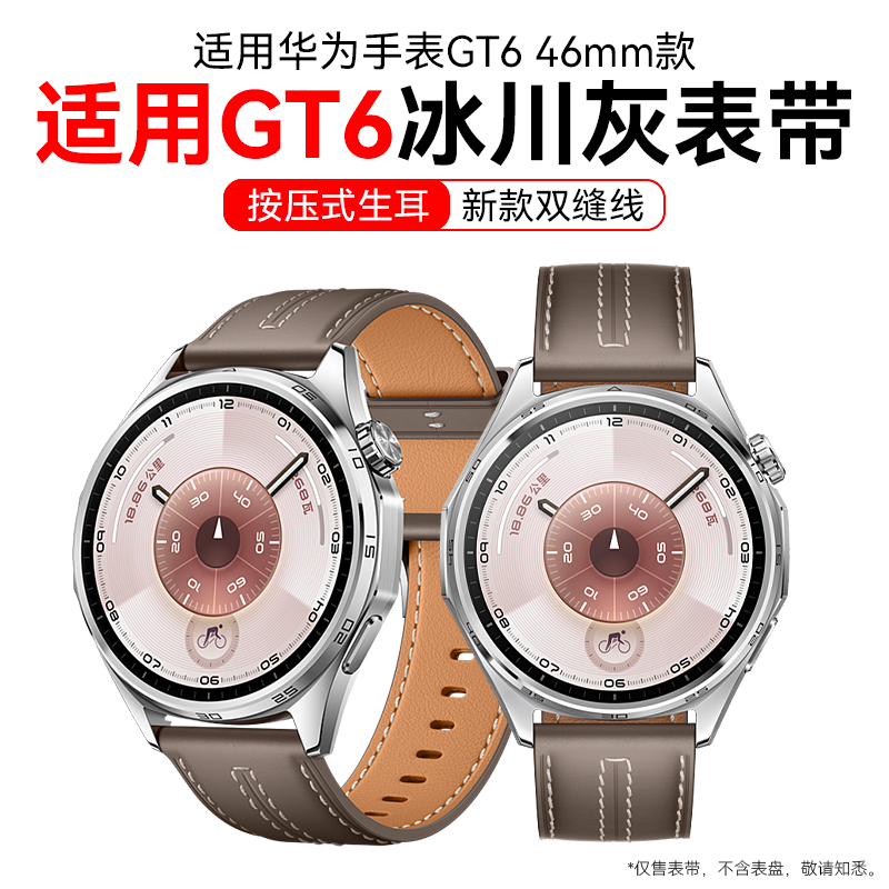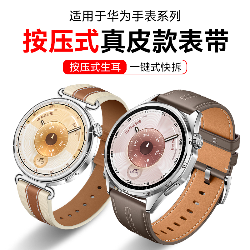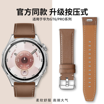 官方同款适用华为手表gt6按压式真皮表带gt5pro砂砾棕watch4通用gt3pro替换带3男gt4时尚腕带41mm女士皮带秋
