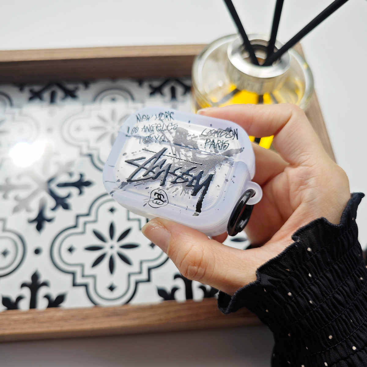 潮牌创意小众stussy斯图西Airpods pro3保护套适用苹果3代无线蓝牙耳机1/2代新款高质感软壳个性支架款