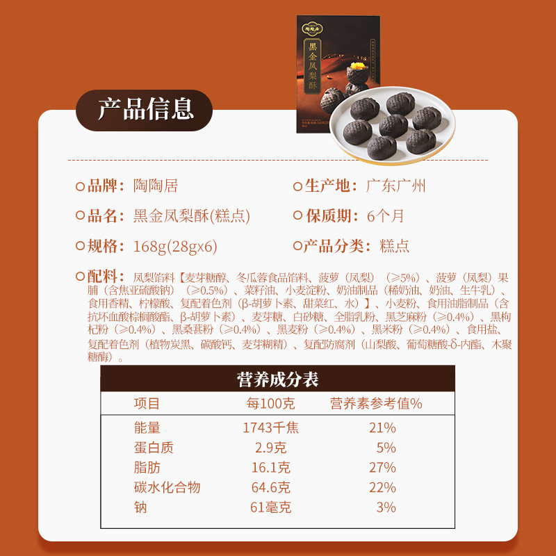 陶陶居黑金凤梨酥广式糕点心