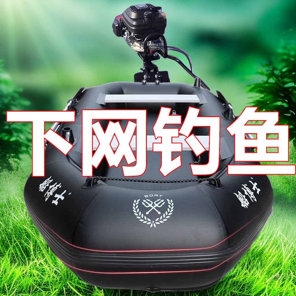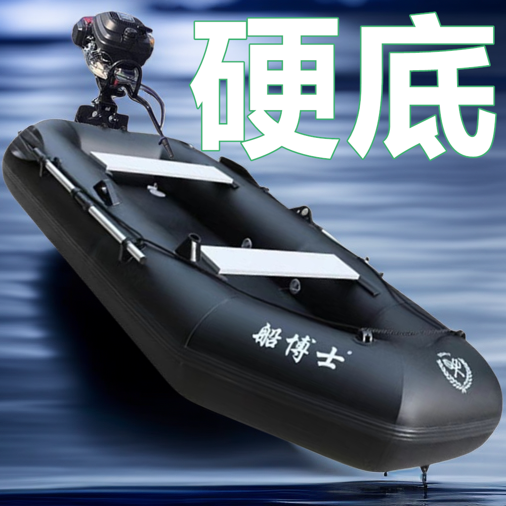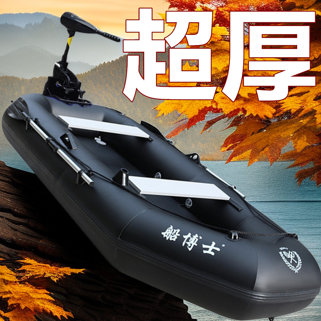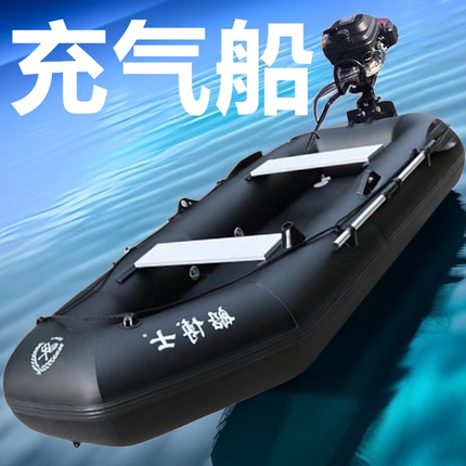 黑色皮划艇充气船橡皮艇加厚钓鱼船橡皮船单双人路亚艇冲锋舟折叠