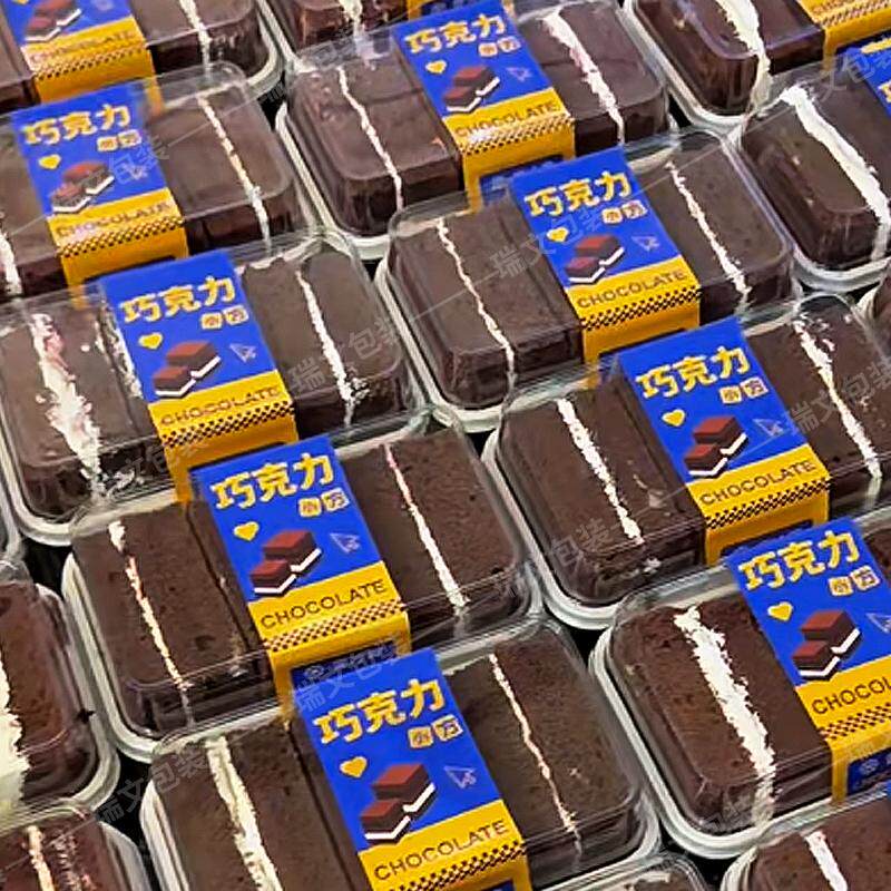 瑞文烘焙食品包装朗姆提子蛋糕巧克力小方透明包装盒贴纸打包盒子