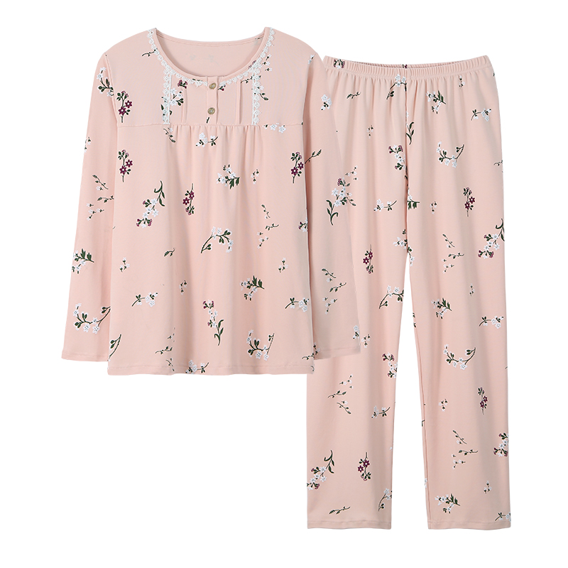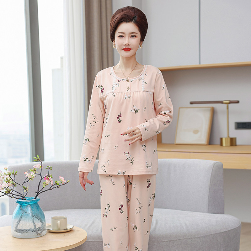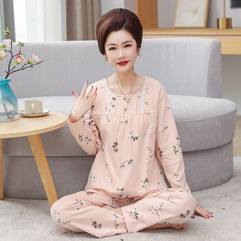 春秋季睡衣女薄款大码长袖长裤中老年人套装中年妈妈夏冬款家居服