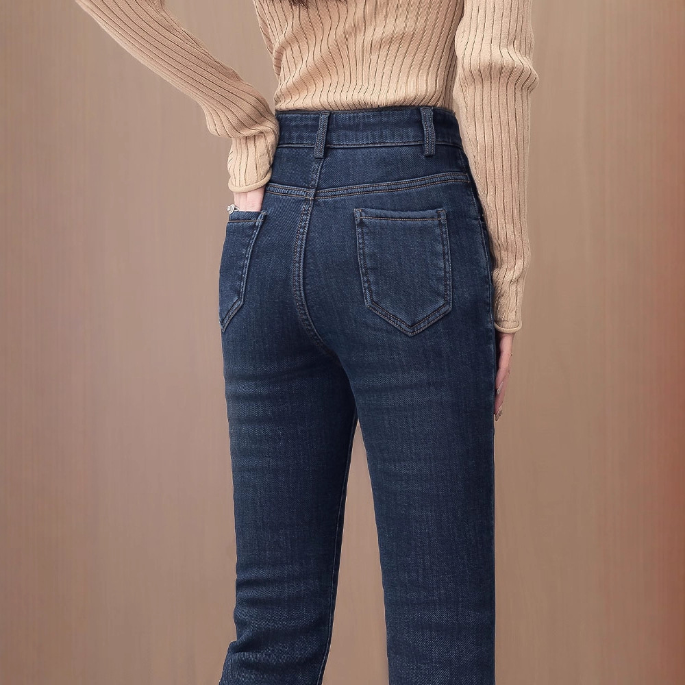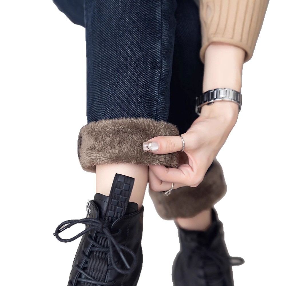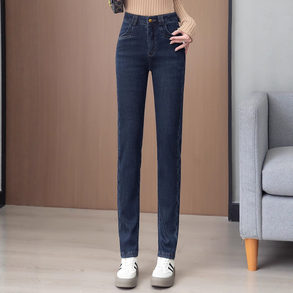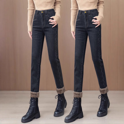 高腰显瘦哈伦牛仔裤女秋冬季2025新款加绒修身烟管裤弹力小脚