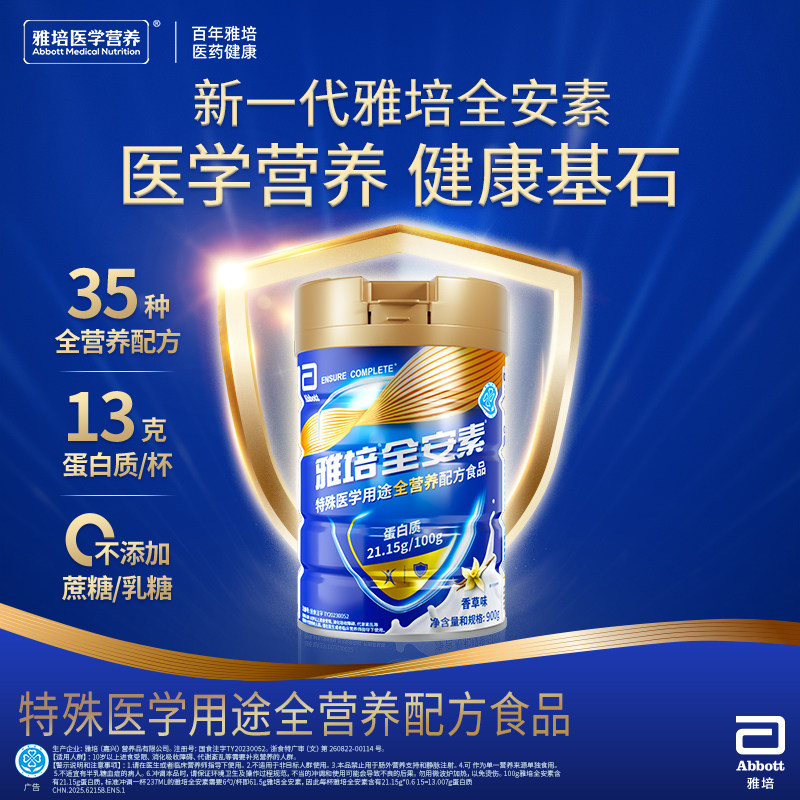 【拍享礼盒】雅培全安素全营养配方中老年营养奶粉900g*4香草
