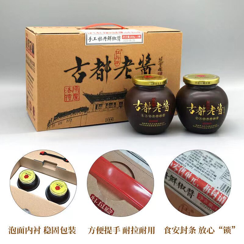 洛阳古都老酱850g手工牡丹鲜椒酱河南特产黄豆夹馍拌面酱农家自制