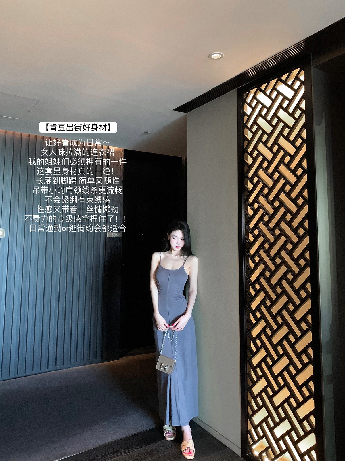 杜总家 肯豆出街好身材*气质收腰女人味简约慵懒随性百搭吊带长裙