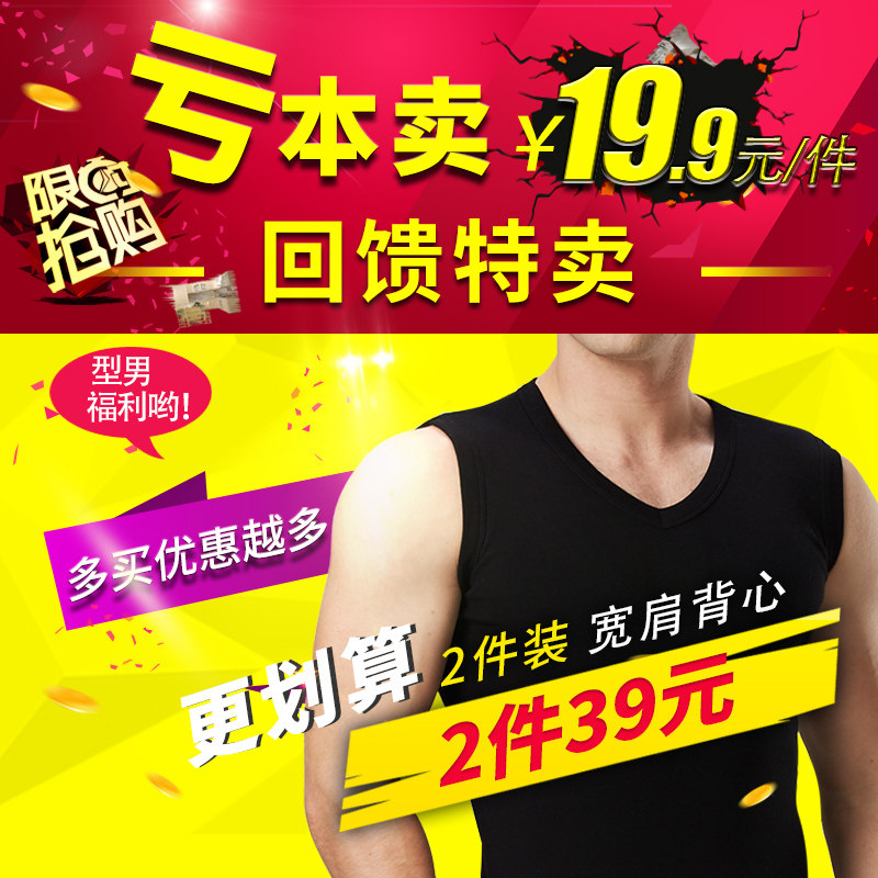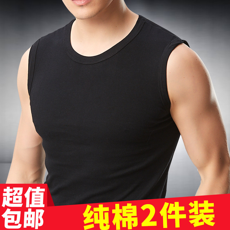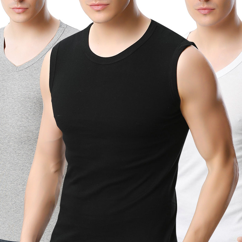 男宽肩背心纯棉无袖坎肩V领汗衫青年运动修身型打底内衣健身全棉