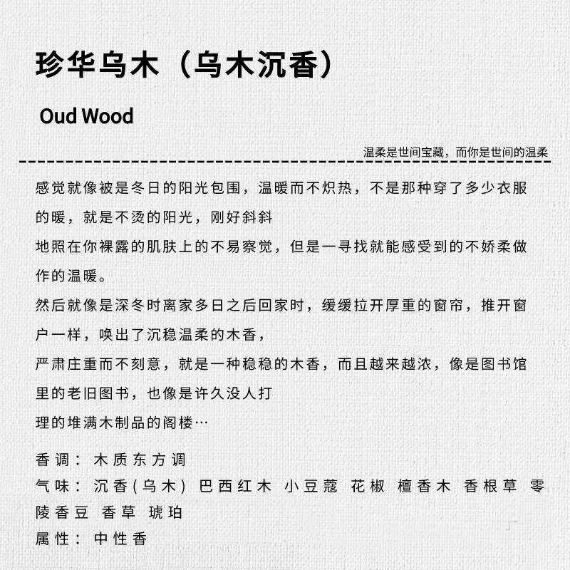 正品TF珍华乌木沉香男女士中性淡香水小样持久自然清新大牌试管