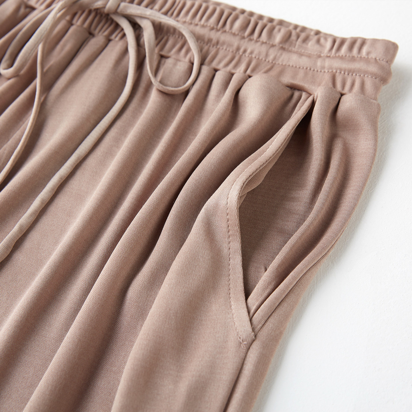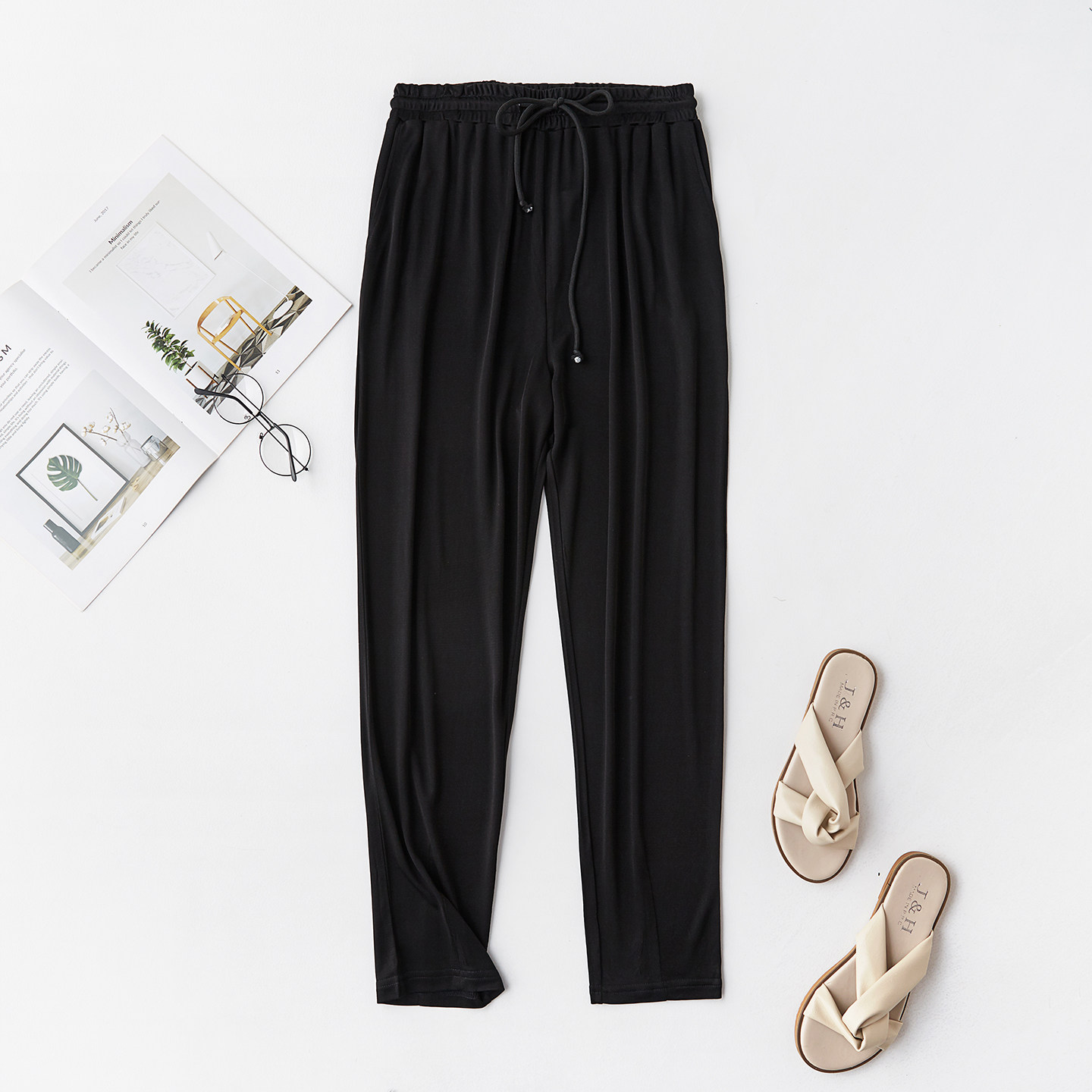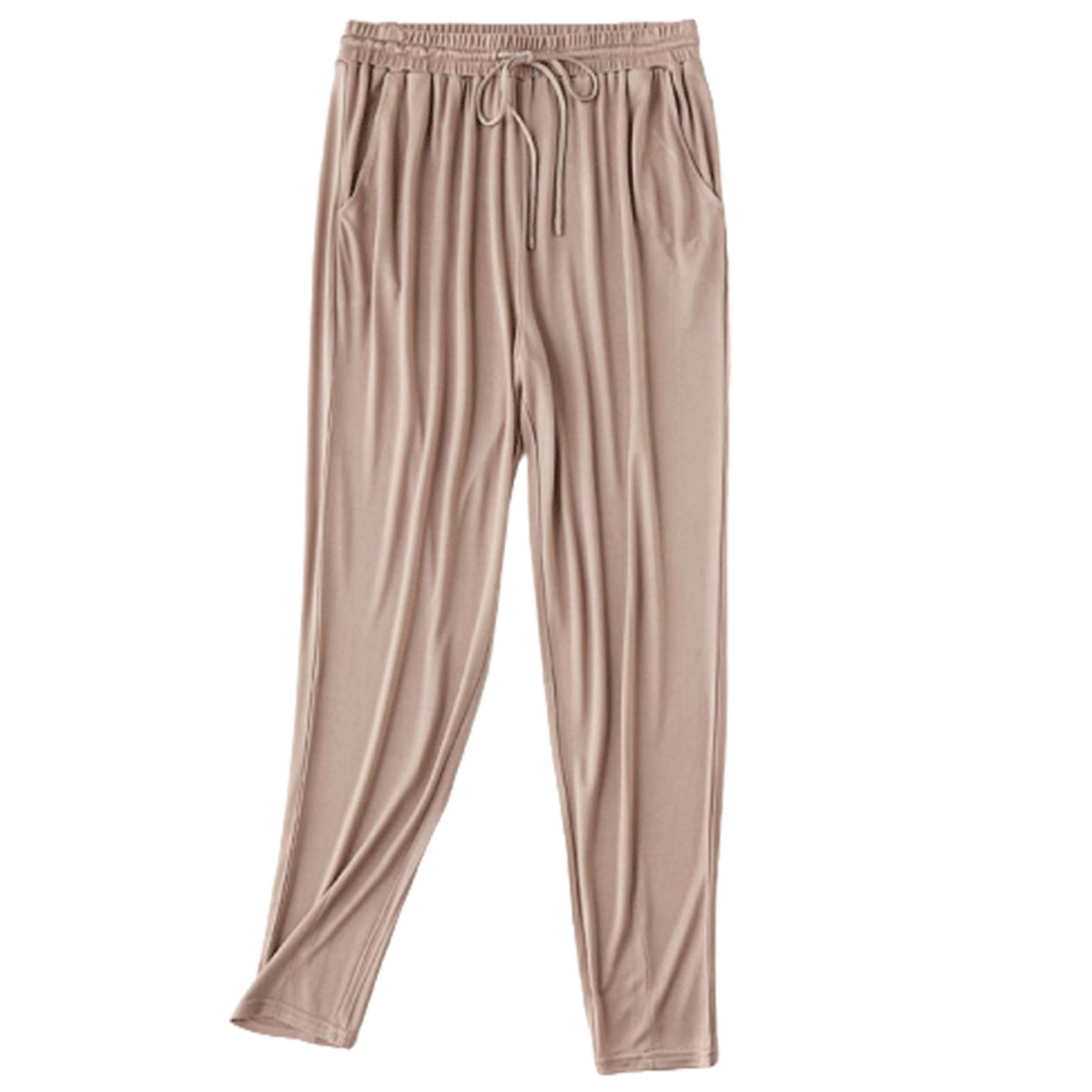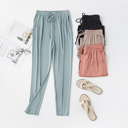 真丝休闲裤女抽绳松紧腰运动裤桑蚕丝哈伦裤卫裤裤子9分裤九分裤