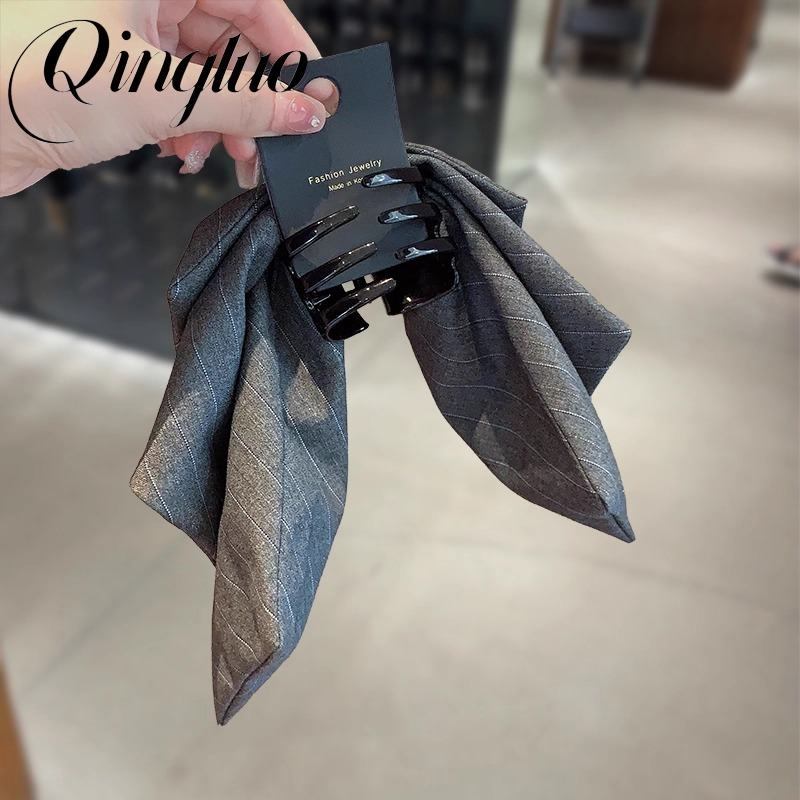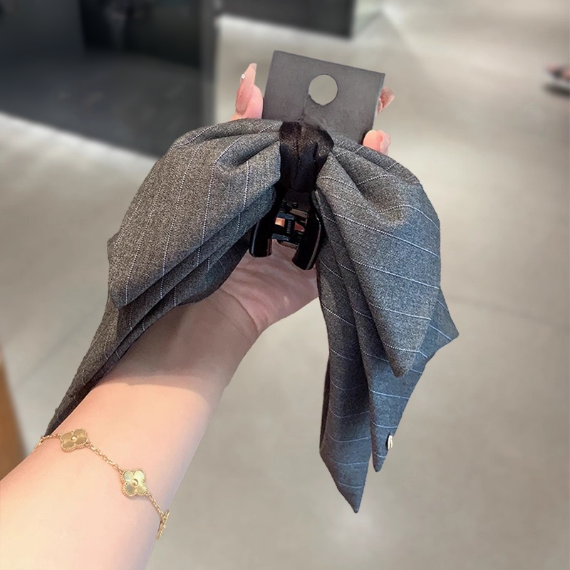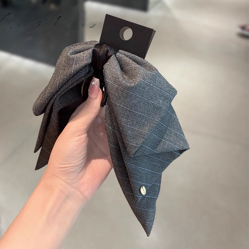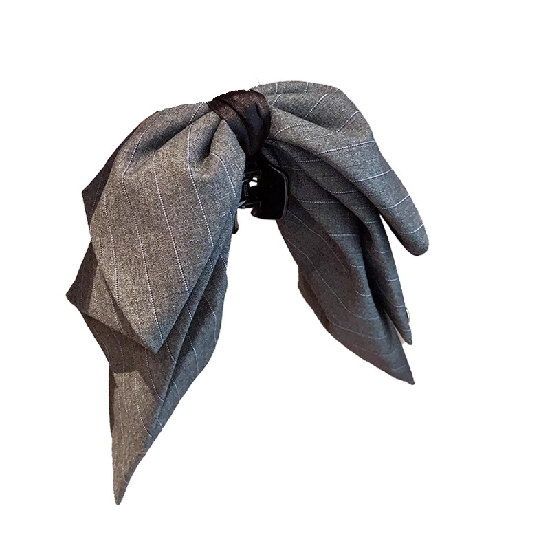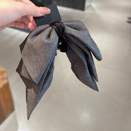 格雷系灰色条纹复古蝴蝶结马尾抓夹后脑勺时尚马尾夹发抓发夹头饰