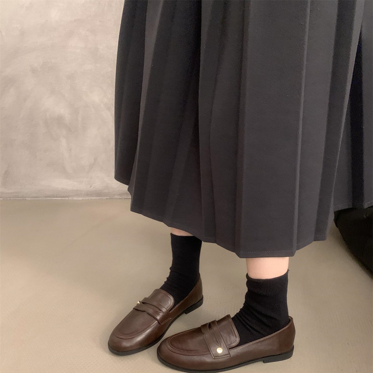 复古英伦风小金扣低跟乐福单鞋女2025年秋季新款通勤一脚蹬小皮鞋