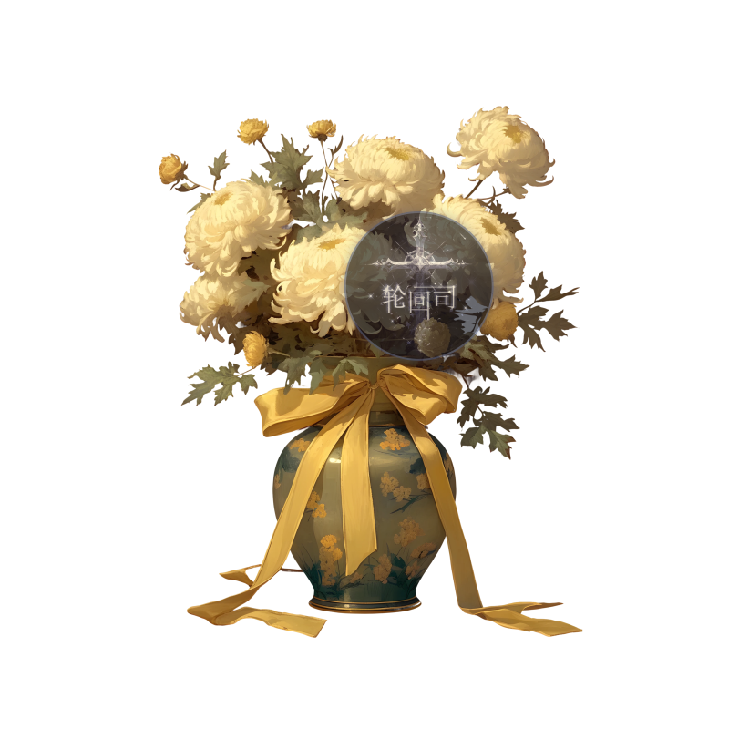 中式古典菊花鲜花中国风盆花PNG免扣原创可商用美陈设计美工素材