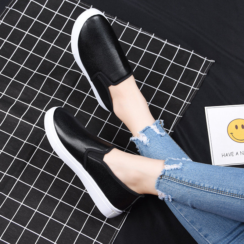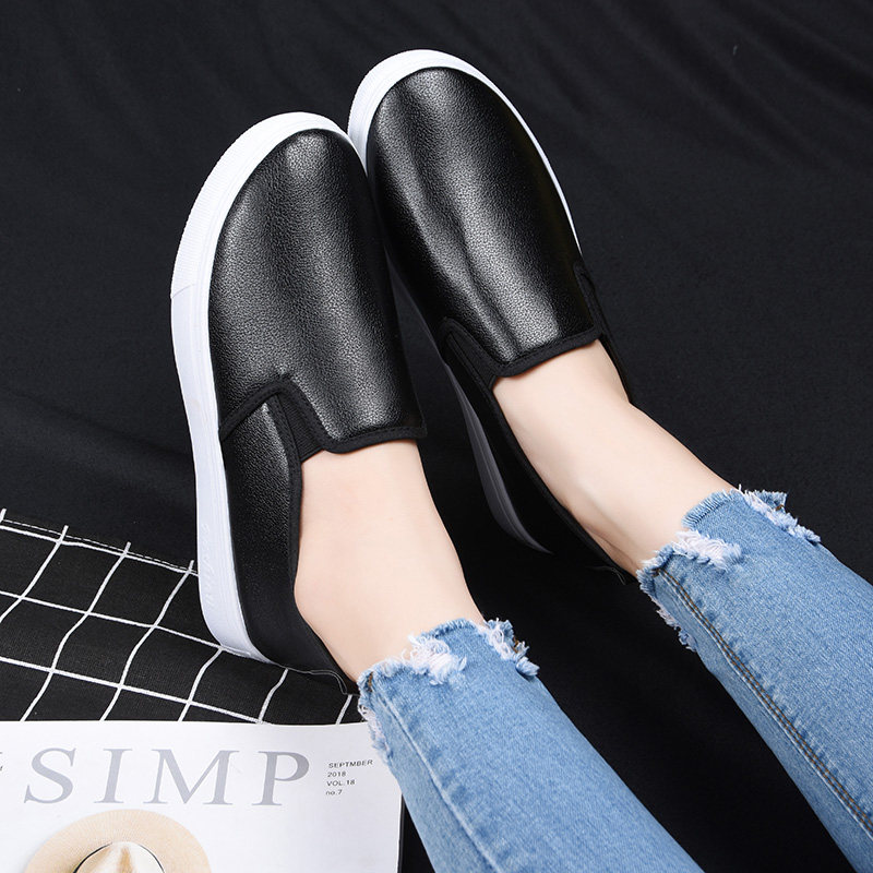 小白鞋女平底舒适学生休闲护士鞋白色皮面防水一脚蹬舒适帆布鞋女