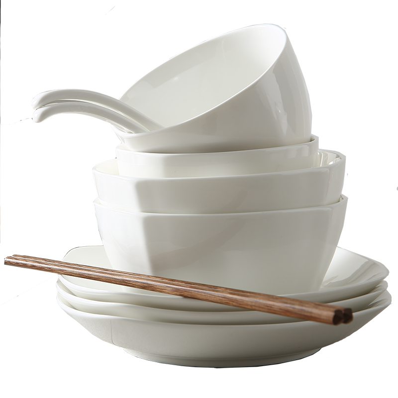 4.5英寸方形碗 纯白陶瓷餐具 日式饭碗 简约创意米饭碗