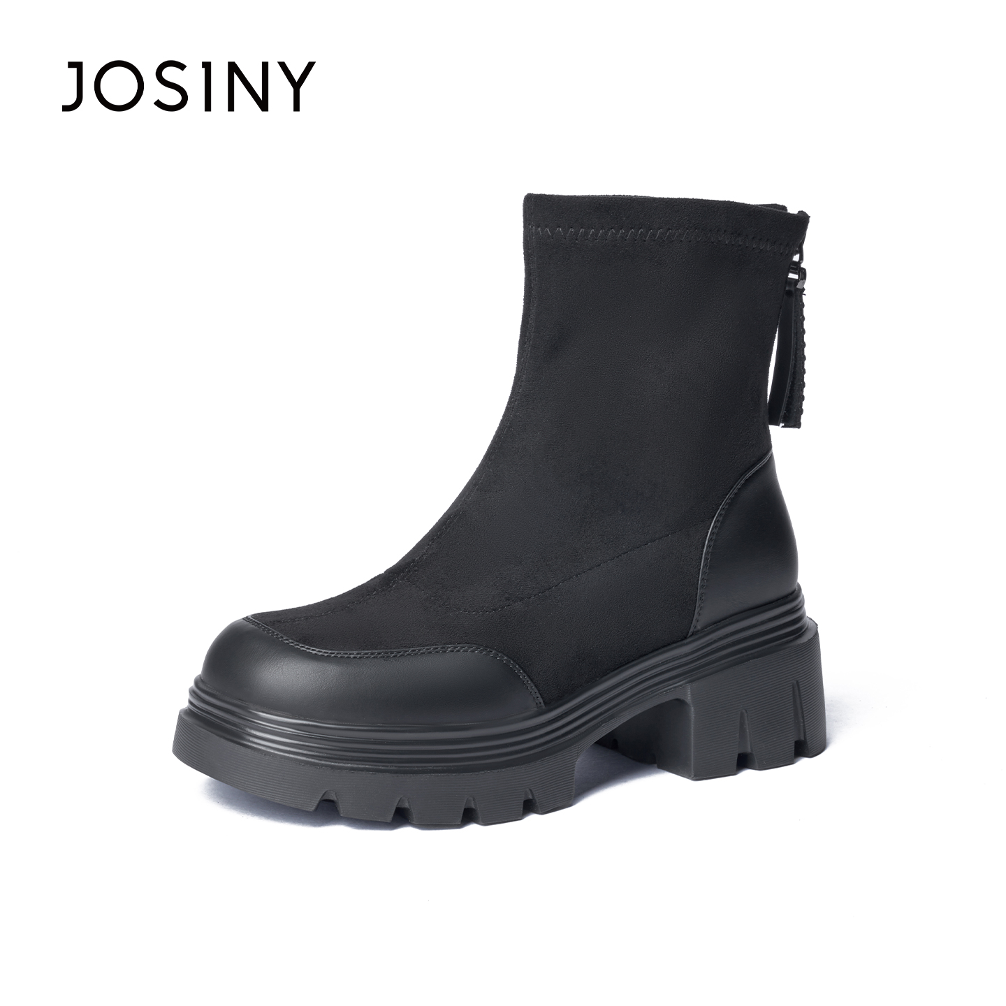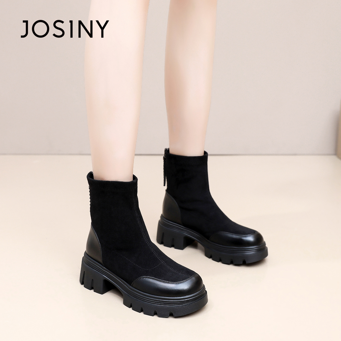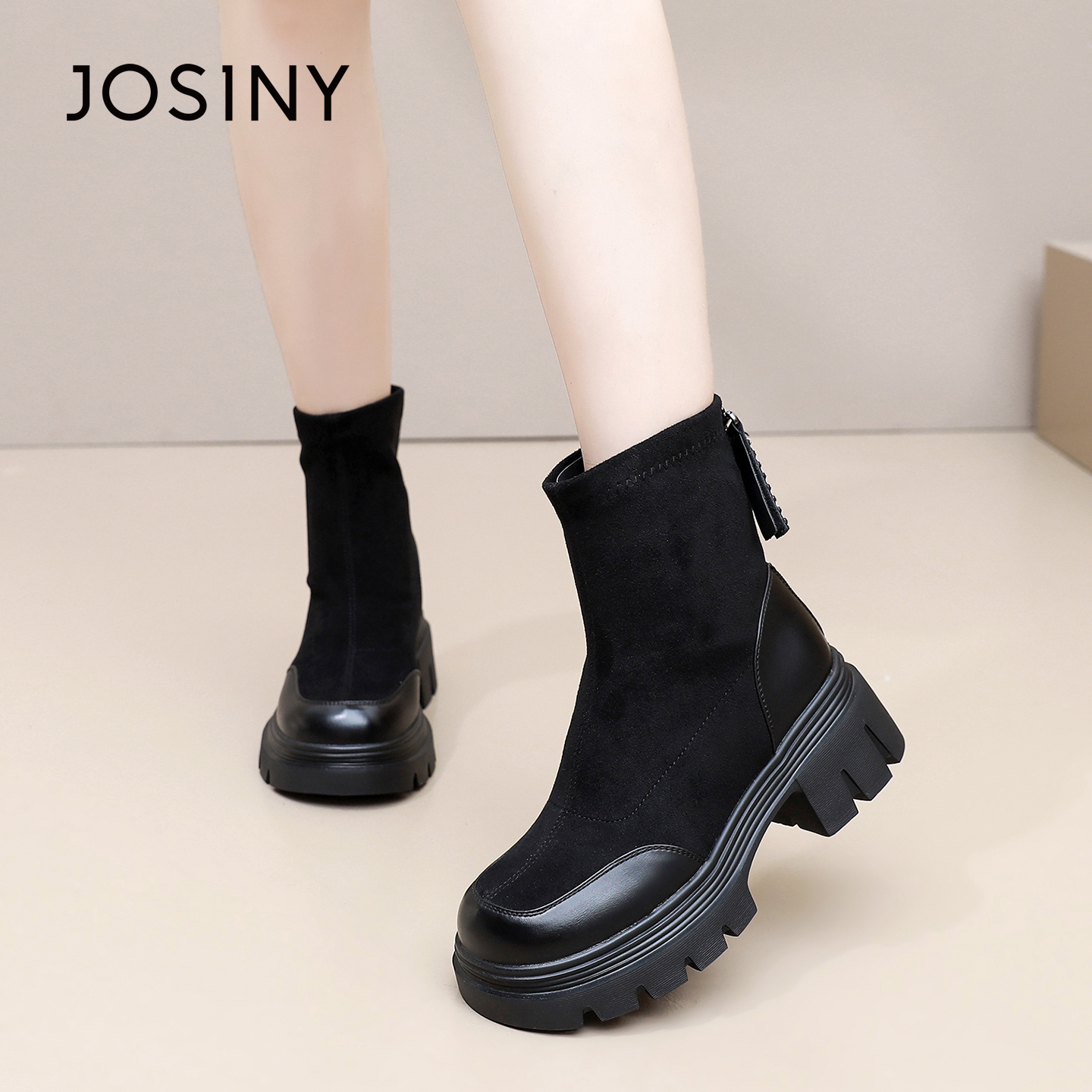 卓诗尼2025秋冬新款短靴女弹力靴子厚底瘦瘦靴小个子高跟马丁靴女