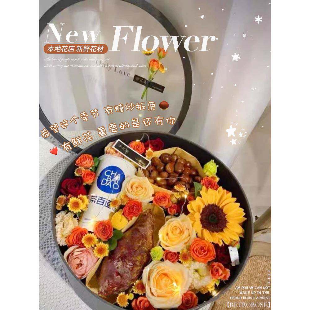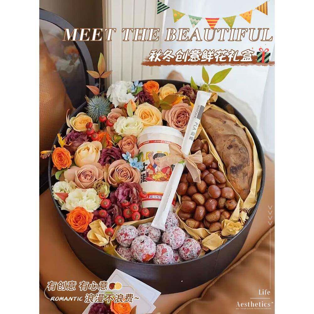 立秋入秋四件套礼盒红薯板栗奶茶花束鲜花速递同城上海全国配送店