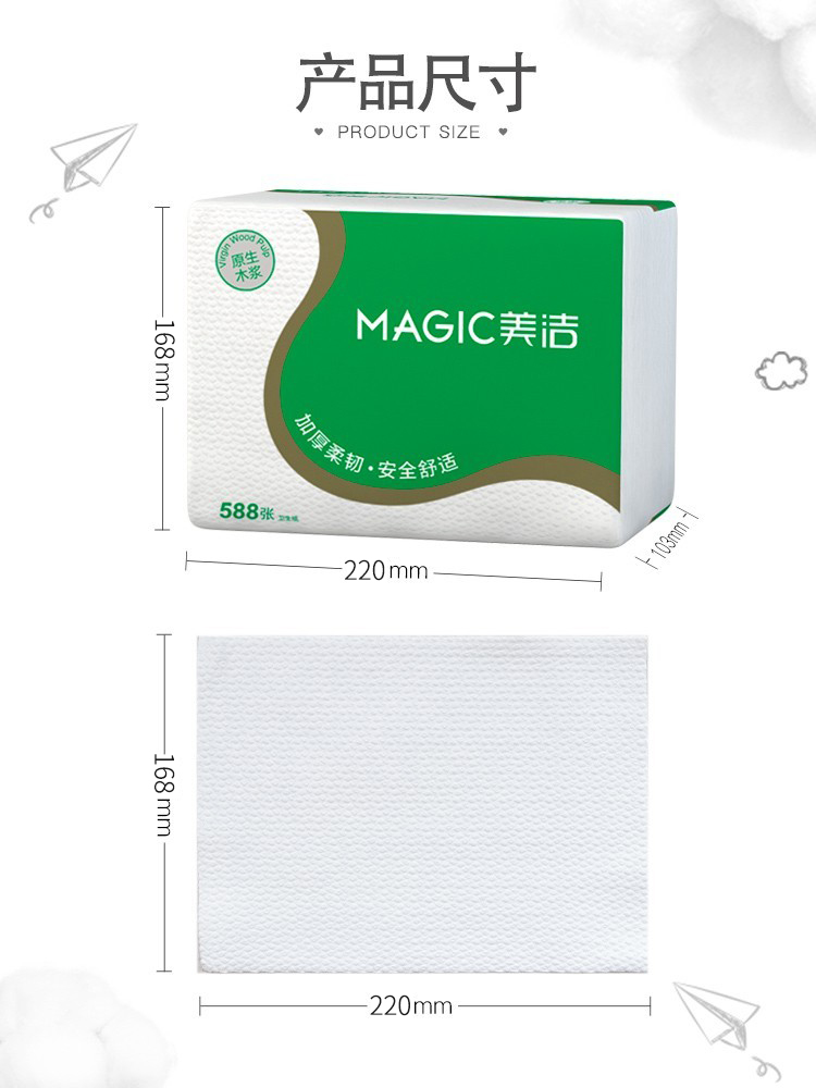 美洁卫生纸厕纸家用实惠装厕所纸厂家直销整箱批平板压花草纸588