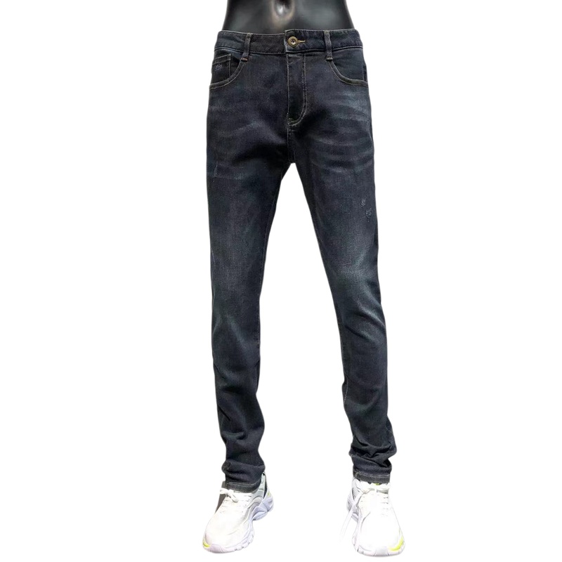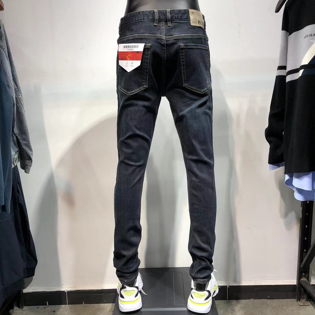 品牌撤柜男装秋冬款修身小脚青年中腰吸光发热加厚薄绒磨毛牛仔裤
