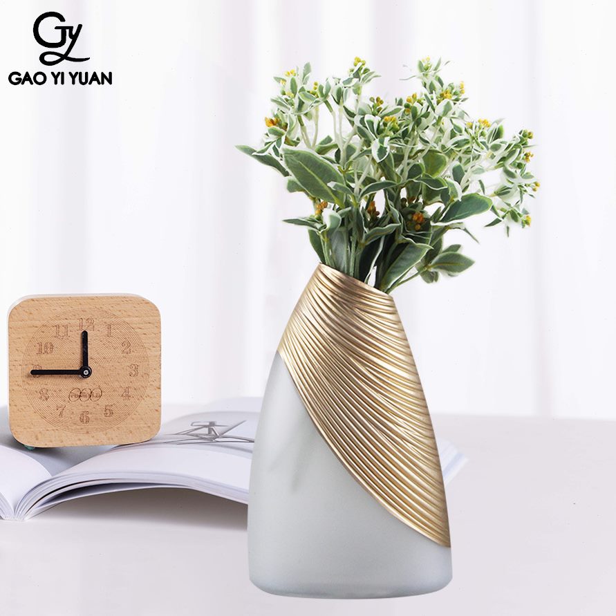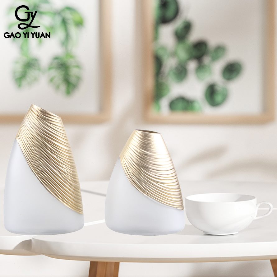带有插花装饰餐厅器螺纹欧式创意摆件玻璃花瓶花器金属玻璃