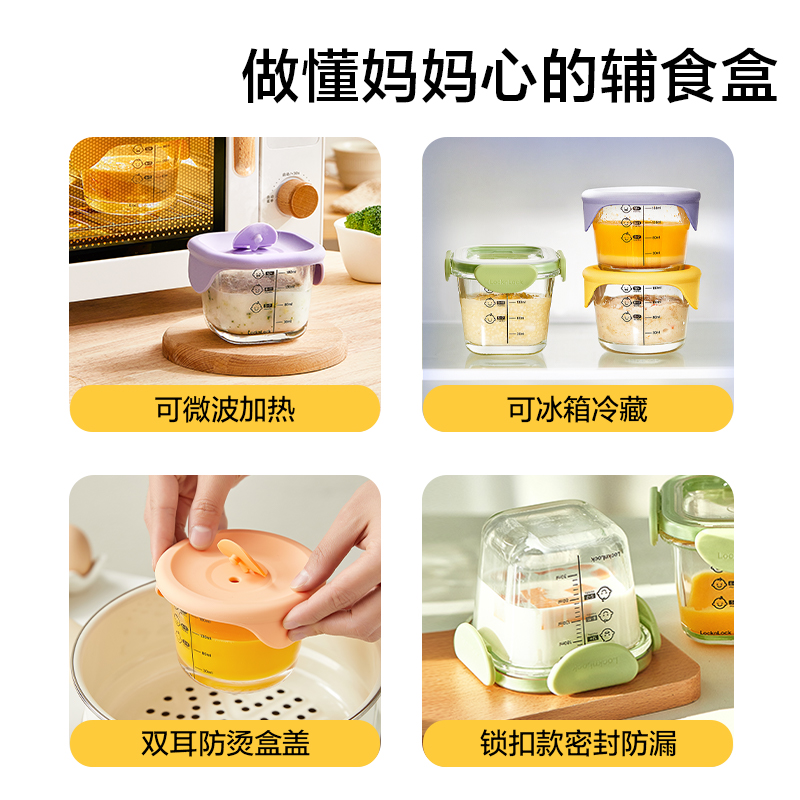 乐扣乐扣辅食碗宝宝专用婴儿蒸蛋碗冷冻辅食盒水果盒玻璃保鲜盒
