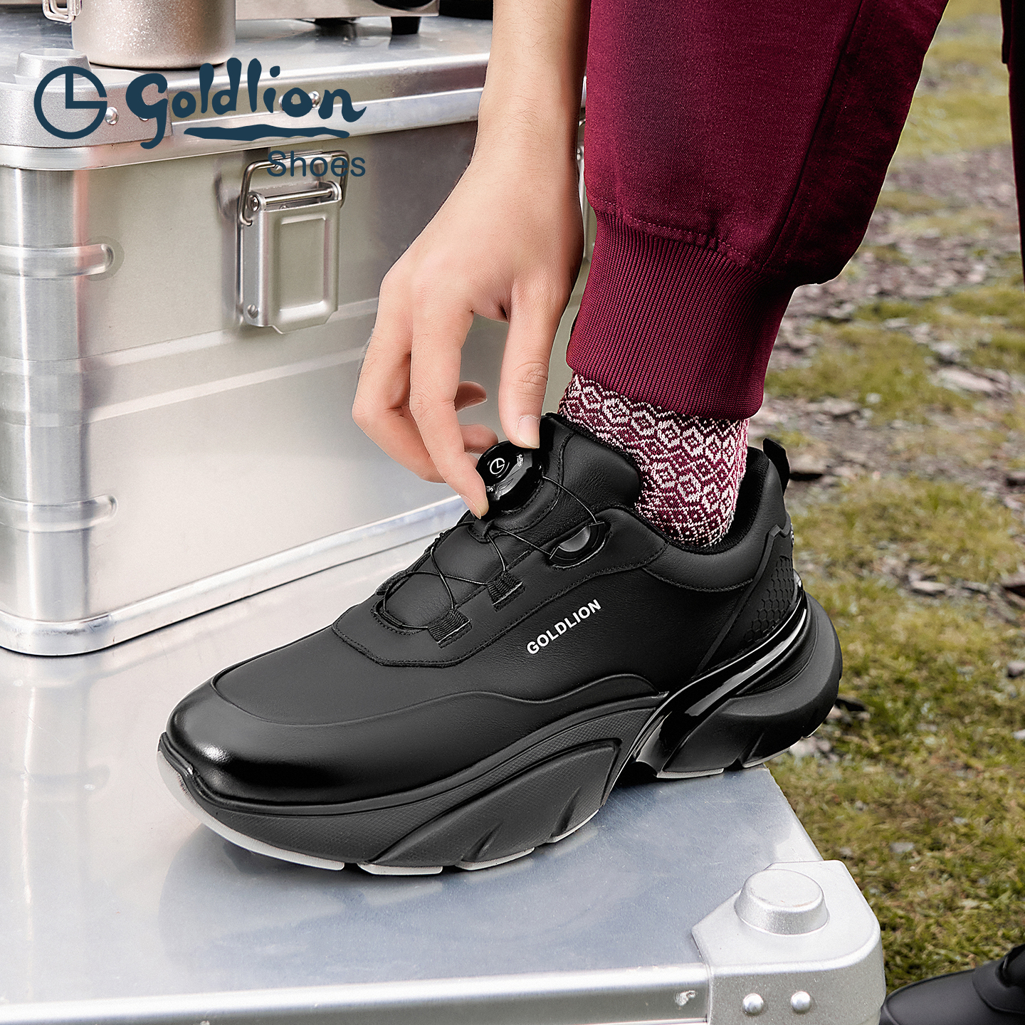 Goldlion男鞋官方正品2025年秋季新款旋转扣休闲鞋男士厚底老爹鞋