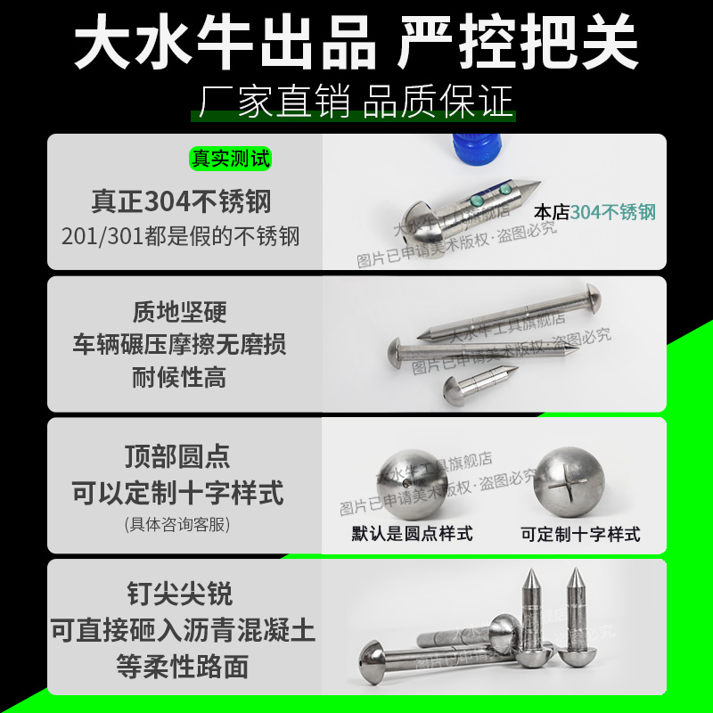 大水牛测钉道路钉不锈钢测量控制点标志测绘钉水准点沉降观测钉点