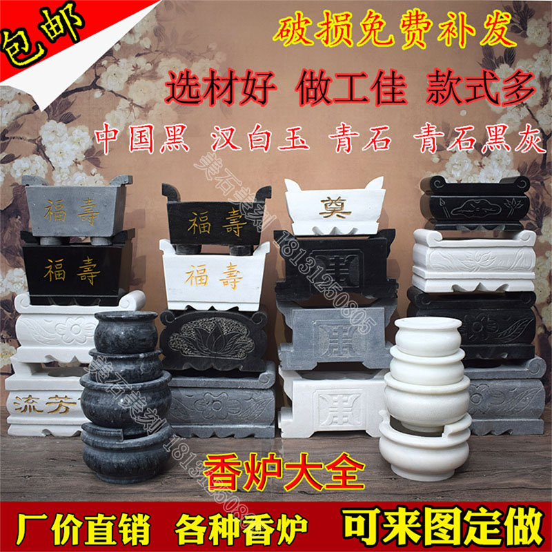 定做天然石头雕刻汉白玉香炉 墓地祭祀 家用花瓶长方形墓碑石狮子